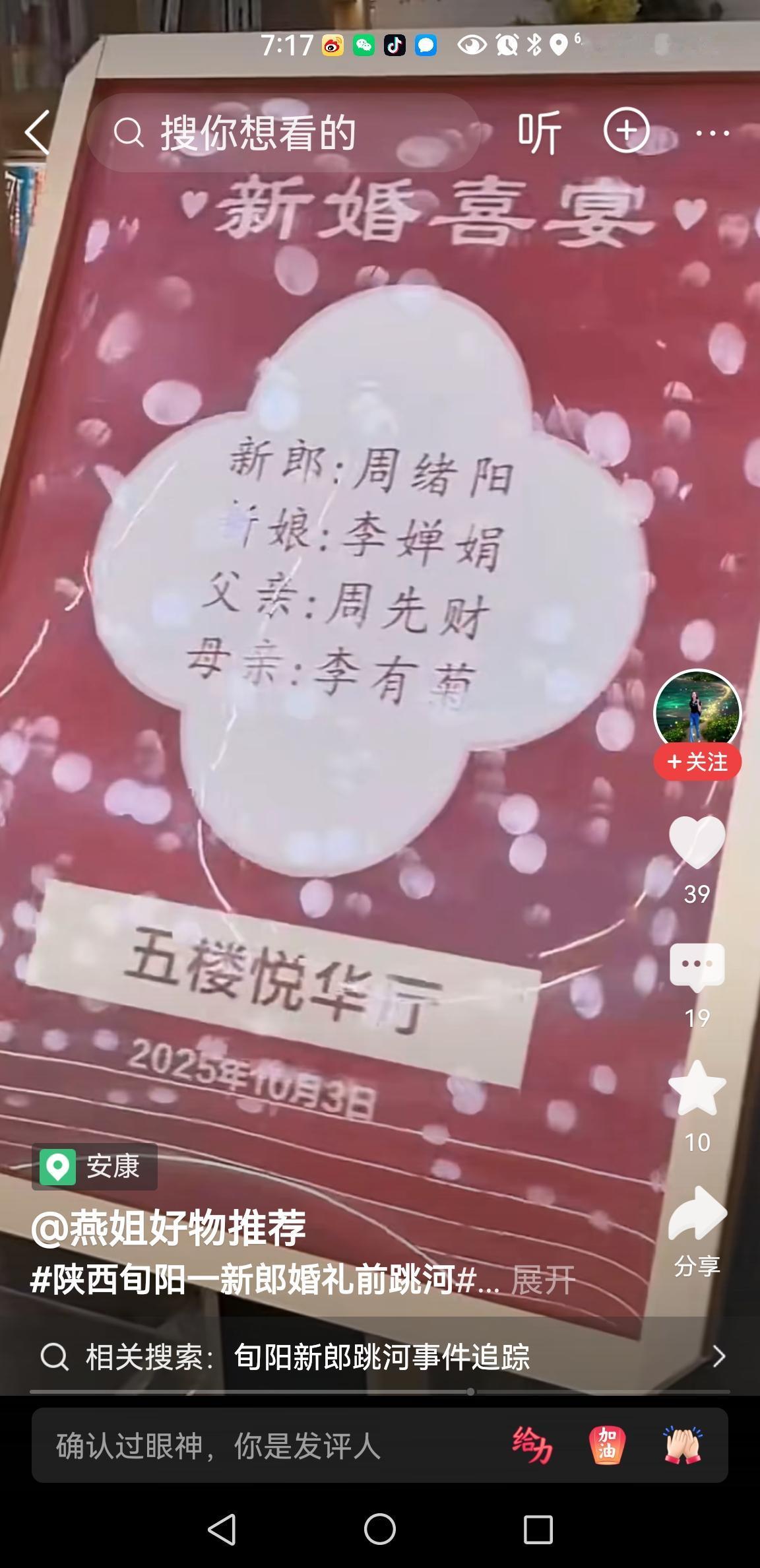 旬阳跳河新郎死因公布:婚礼琐事 【陕西旬阳通报】 “男子婚礼当天跳河”:因婚礼琐