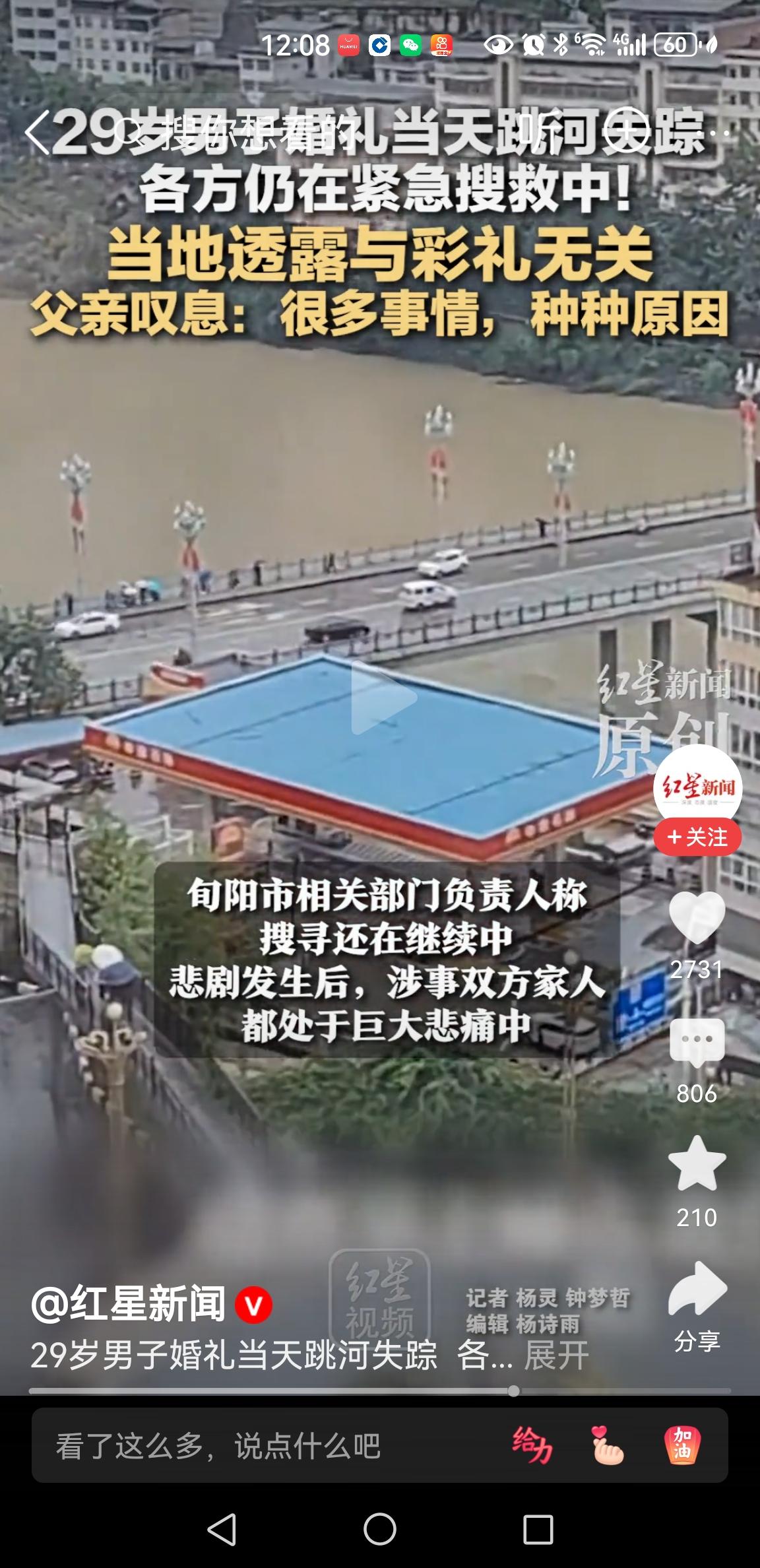 旬阳跳河新郎死因公布:婚礼琐事 【陕西旬阳通报】 “男子婚礼当天跳河”:因婚礼琐事情绪失控,多部门正全力搜救。 新郎父亲告诉记者: 很多事情,种种原因 那些被吐槽的婚礼琐事,就是压死骆驼的最后一根稻草。成年人的崩溃,从来都不是突然的。 现在最痛不欲生的是新郎的父母,白发人送黑发人。 为了儿子娶媳妇,倾其所有。没想到,最后痛失爱子,人财两空。 网友关注此事,不错!但是不要妄议胡乱猜测 不要给两位老人伤口上撒盐[祈祷]更不要指责新郎不该逃避,不该跳河… 愿逝者安息,生者坚强[祈祷][祈祷][祈祷]