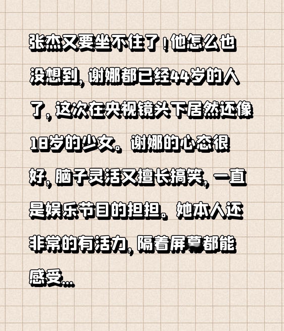 张杰又要坐不住了! 他怎么也没想到, 谢娜都已经44岁的人了,这次在央视镜头下居