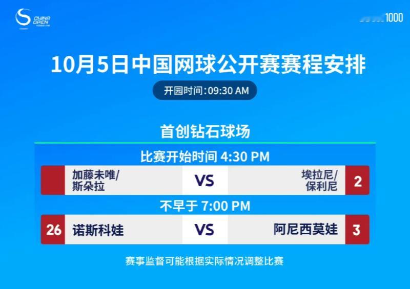 [2025中网女单决赛:阿尼西莫娃vs诺斯科娃,H2H:1-1]阿尼西莫