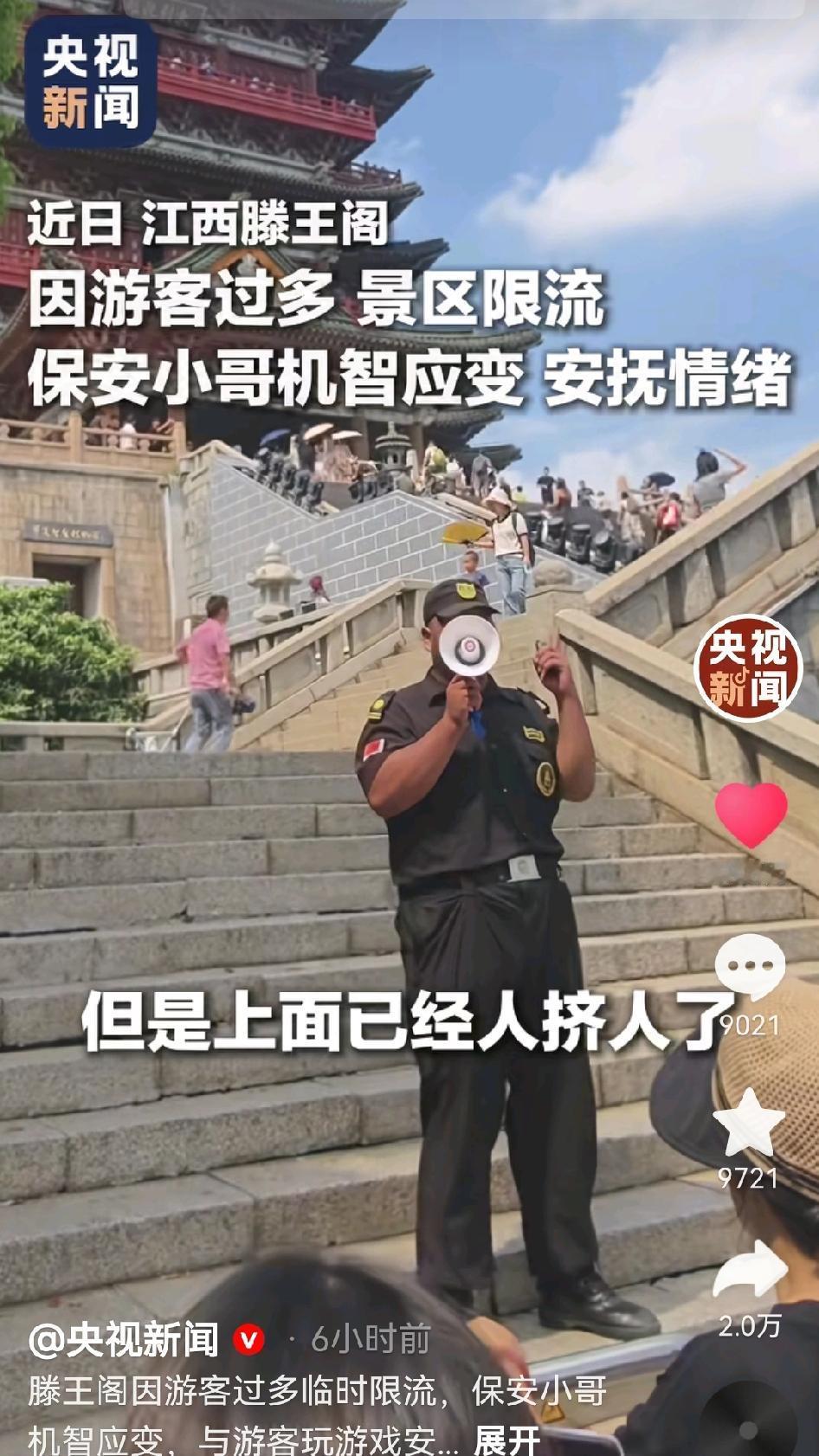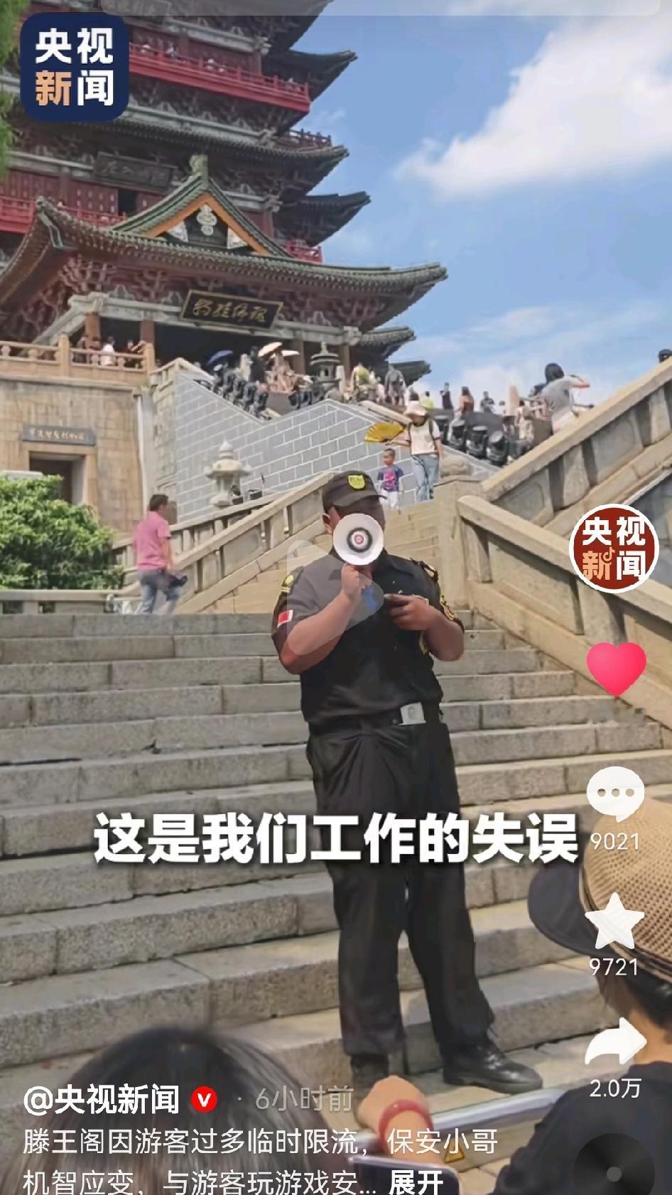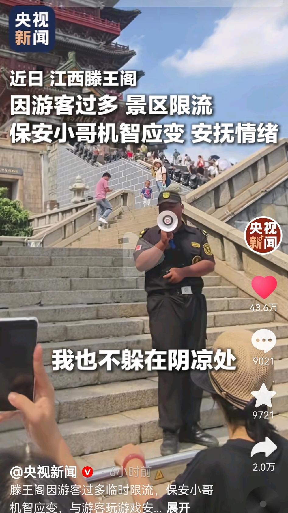 这个保安小哥应该重重的奖励,甚至可以考虑把它纳入编制!!国庆假期,江西滕王阁景区
