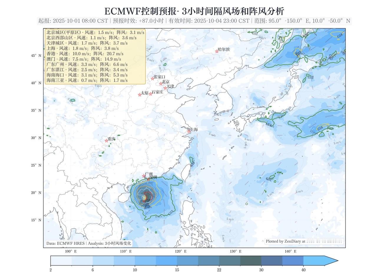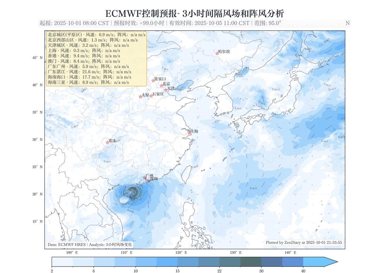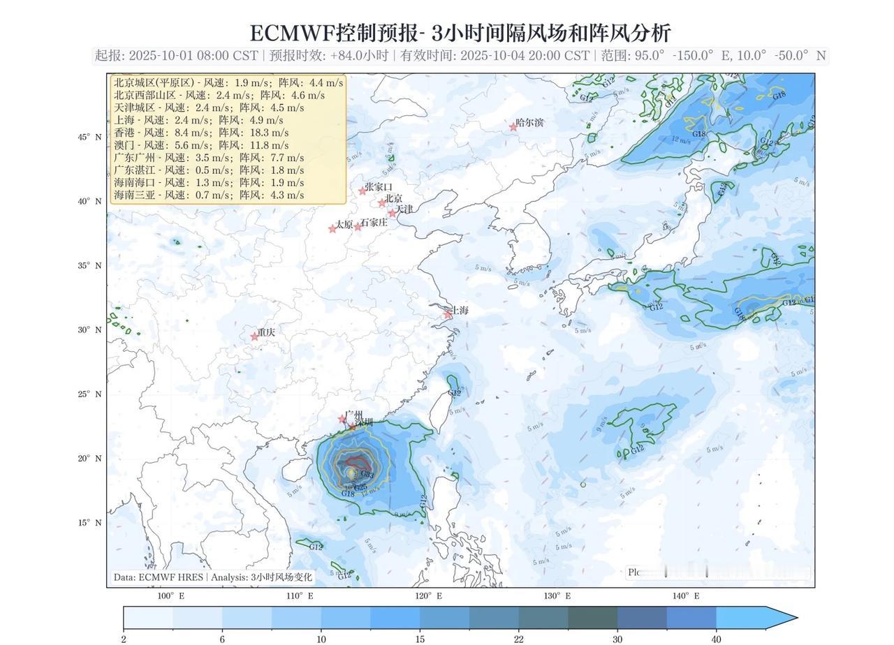国庆期间香港澳门地区的台风影响(更2) 记录时间:10.01-23.10 预计可能的 台风麦德姆 影响,此处预测模式为ec模式,基于此10.5号左右的可能影响: [一]香港澳门珠海地区:雨量不大,平均风速不大,但阵风大于15m/s以上的时间从10.4晚上就开始影响了,据此估计,10.4晚上-10.5上午出行及飞机起降是会受到影响的,持续到10.5什么时候阵风数据目前还没有,明晚分析应该就有数据了 [二] 目前路径依然是往湛江海口方向走的,降雨和风速都会很大 [三] 三亚风的影响目前看不大,10.5、10.6有可能雨大些