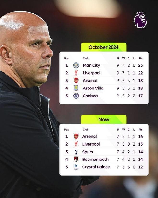 这是利物浦一年来第一次在比赛周结束时,未能至少并列积分榜榜首!这件事要从恩凯蒂亚读秒绝杀说起[不愧是你][不愧是你][不愧是你] 阿森纳2比0西汉姆联 金秋观赛季 阿森纳著名教授