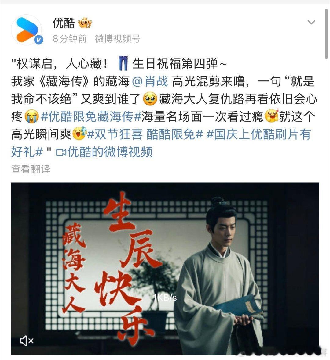 肖战生日鹅和酷第一时间送上祝福,尤其是这个酷,要把今天变成肖战日了,站内给藏海