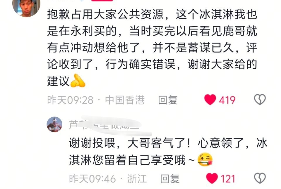 只是路人看到鹿晗很激动然后正好买了冰淇淋