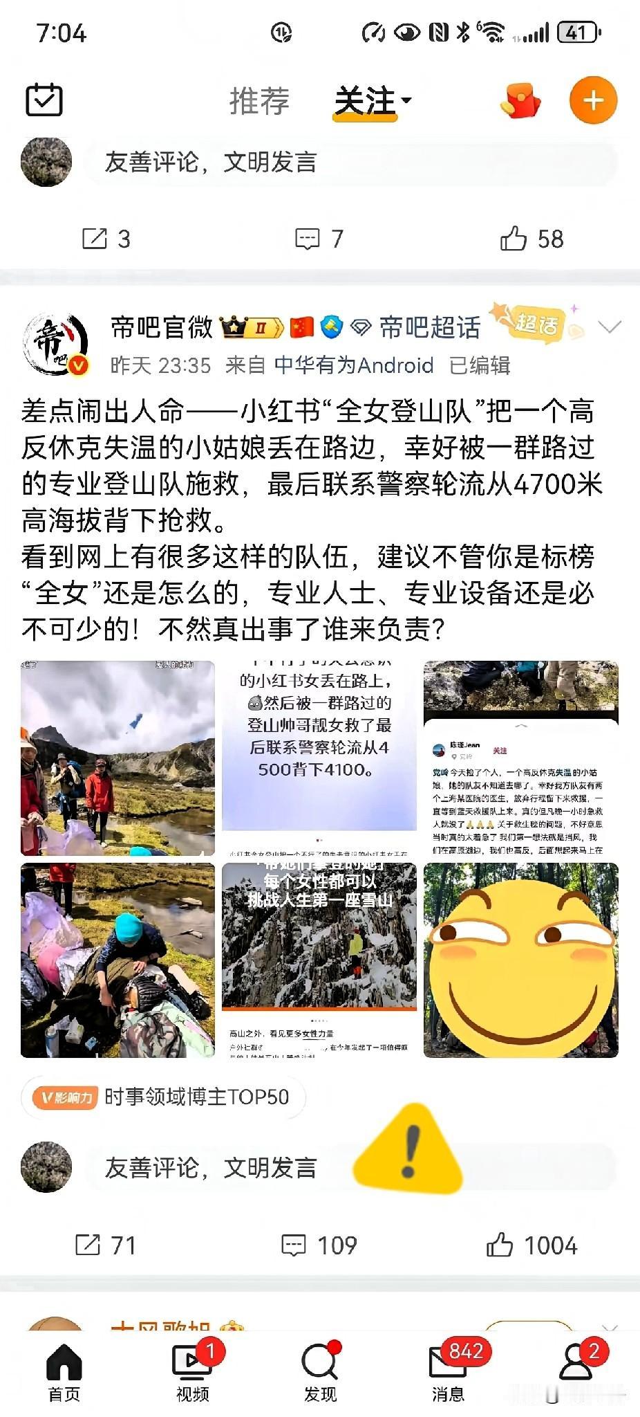一女孩高反失温昏迷。结果被丢山上不管了!小红薯上约的全女登山,在4700米高峰时,一女孩子因高原反应失去意识,那些“最美好的生物”队友走了!最后被一群登山帅哥和警察轮流背下山。 单纯的小女孩千万不要相信这些所谓全女,一帮自私自利的组合,它会为了别人牺牲自己的利益吗? 四川甘孜丹巴县党岭,海拔4700米的卓雍措湖畔,一个女孩孤零零躺在巨石旁。她面色惨白,呼吸微弱,高原反应与失温同时发作,意识正在一点点消失。而她的队友们——那些在小红书上相约的“全女登山团”成员,早已不见踪影。 这是10月2日正午发生的真实一幕。女孩来自江苏,与网上招募的“旅游搭子”结伴徒步。当危险降临,所谓的姐妹情谊瞬间蒸发。幸好另一支路过的徒步队伍发现了她。 上海某医院的两位医生恰好在这支队伍中。他们立即展开专业施救:包裹保温毯、掐人中、用热水湿润嘴唇、提供氧气。每一个动作都在与死神赛跑。湖北襄阳蓝天救援队队员也加入了救援。 丹巴县丹东派出所的报警电话骤然响起。副所长仁真东周带着镇政府工作人员和医务人员,背起氧气瓶和药品就往山上冲。从报警点到女孩受困处,他们要徒步跋涉整整两小时。 山路陡峭湿滑,救援异常艰难。仁真东周蹲下身,第一个背起女孩。同行人员轮流接力,每走十几二十米就要换人。雨水让道路更加泥泞,每个人的体力都在透支。这支临时组成的救援队,硬是用肩膀扛起了生命的重量。 这已经不是第一次“全女户外”险象环生了。北京的“她的山”组织曾把50多人的队伍带迷路,9公里路线硬生生走成20公里。领队连头灯都不带,队员们只能在雷雨夜摸黑下山。 深圳“她野行”更离谱。一场所谓的公益露营活动,以卡式炉爆炸告终,有人住进ICU。组织方事后只退了158元活动费,连句道歉都没有。 这些组织最擅长用华丽外衣包装无能。“全女”、“她力量”、“女性互助”,标签一个比一个漂亮。真出了事,跑得比谁都快。那个被遗弃在4700米高山的女孩,成了这些虚伪口号最惨痛的注脚。 专业能力从来不分性别。峨眉山的专业陪爬团队服务过上千游客,九成是女性。他们的队员具备野外生存和急救能力,关键时刻真能救命。这才是负责任的态度。 高原徒步不是逛公园。党岭海拔4700米,空气含氧量不足平原60%。没有专业向导、完善预案和急救设备,就是在拿生命开玩笑。那些在网上随便组队的“全女团”,你们准备好承担这个责任了吗? 被救女孩是幸运的。经过治疗,她已无大碍。但这段经历注定会成为终身阴影。当她从病床上醒来,想起那些弃她而去的“队友”,该是怎样的心寒? 丹巴县文旅局工作人员说得委婉:“属地派出所和镇政府工作人员均前往了救援”。他们没说的是,如果当时没有那支路过的专业队伍,如果民警晚到半小时,结局会怎样。 标签永远不能保障安全。无论是“全女”还是“混编”,专业素养和责任心才是户外运动的护身符。女孩们,下次看到那些打着“全女”旗号招摇的队伍,一定要多问一句:你们有什么资质?领队有急救证书吗?路线提前踩过点吗? 生命经不起试错。山永远在那里,但命只有一条。 各位读者你们怎么看?欢迎在评论区讨论。