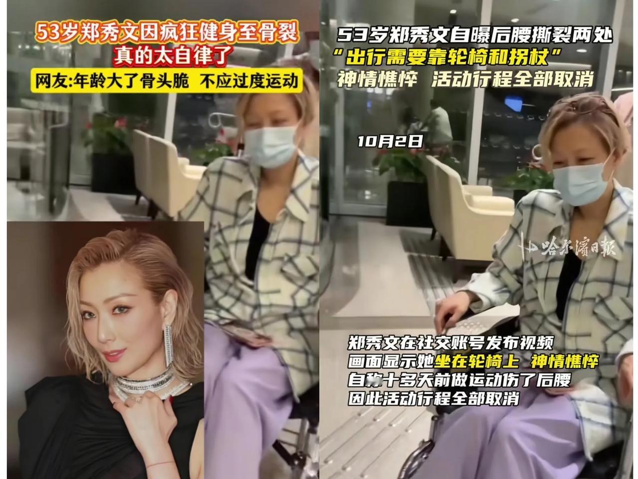 人到了一定年纪,千万不要瞎折腾, 郑秀文就是个例子,一直以自律健身出名,十几年如一日每天跑8公里! 这毅力没得说,可结果呢?腰部两处撕裂,只能靠轮椅出行,所有活动都黄了! 很多人觉得自律就是狠狠坚持,其实不然。上了年纪,身体机能下降,尤其女性钙质流失快,还按年轻时那强度运动,纯粹跟自己身体过不去! 咱都得明白,运动是为了健康,不是找罪受! 自律的核心该是懂身体,不是硬扛。比起“必须练够多久”,不如学会听身体的信号! 你身边有没有这种因过度运动受伤的例子呀?快来说说中年人到底咋运动才靠谱。