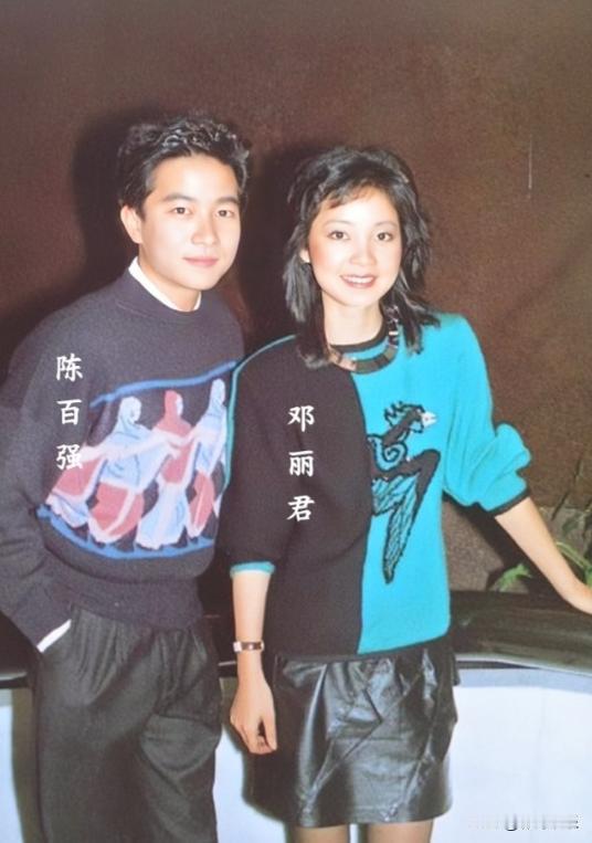 1982年王炸同框!陈百强邓丽君的颜值巅峰时刻,这画面太绝了! 1982年,陈百强24岁,穿件花毛衣文质彬彬像贵公子;邓丽君29岁,拼色毛衣配皮裙,美得时髦又大气! 两位乐坛传奇在晚宴上的这张合影,现在看还是绝绝子!当年的他们一个温雅一个明艳,这画面简直是时代的回忆杀,乐坛金童玉女同框谁不爱看啊!陈百强 陈百强老歌