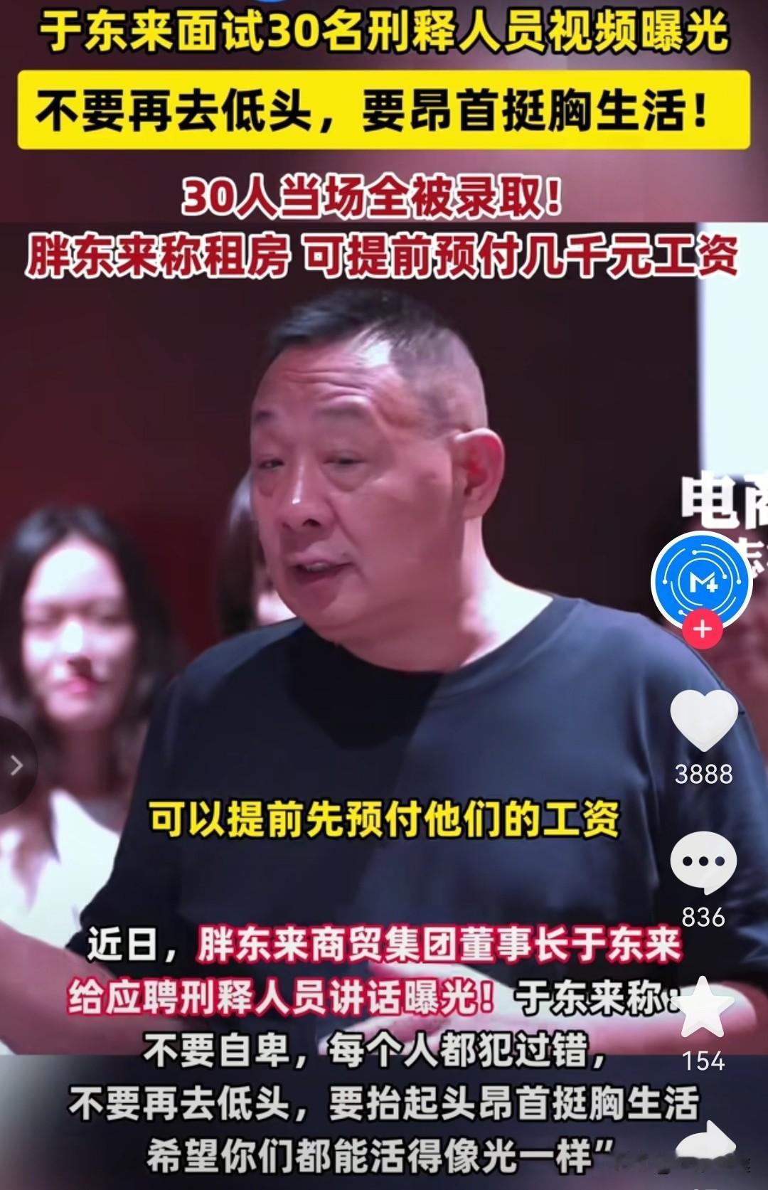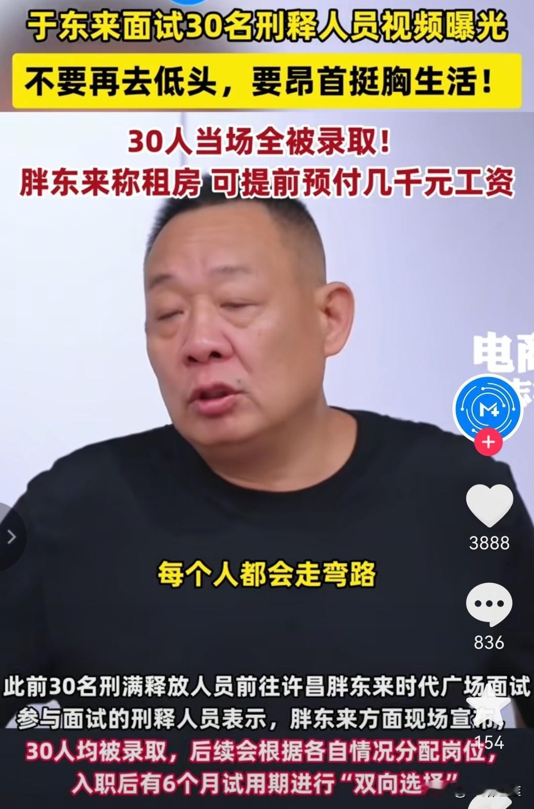 于东来是一个有大爱的人,但是真不应该同情这帮犯罪份子,他们一定是有非常可恨的地方,不敢说这些人全部都是死不悔改,但大部分肯定是死性不改,人性就不是那么容易改变的,每个人都一样,看看历史就知道,恩将仇报的罪犯数不胜数,接收这些人有可能给企业带来灭顶之灾,因为你不知道他们什么时候就会因为一点小事走上极端… 东来思想 东来商集团 东来哥商业思维 东来大哥哥 胖东来招收30名监狱释放人员 胖东来的老板于东来到底有多牛?