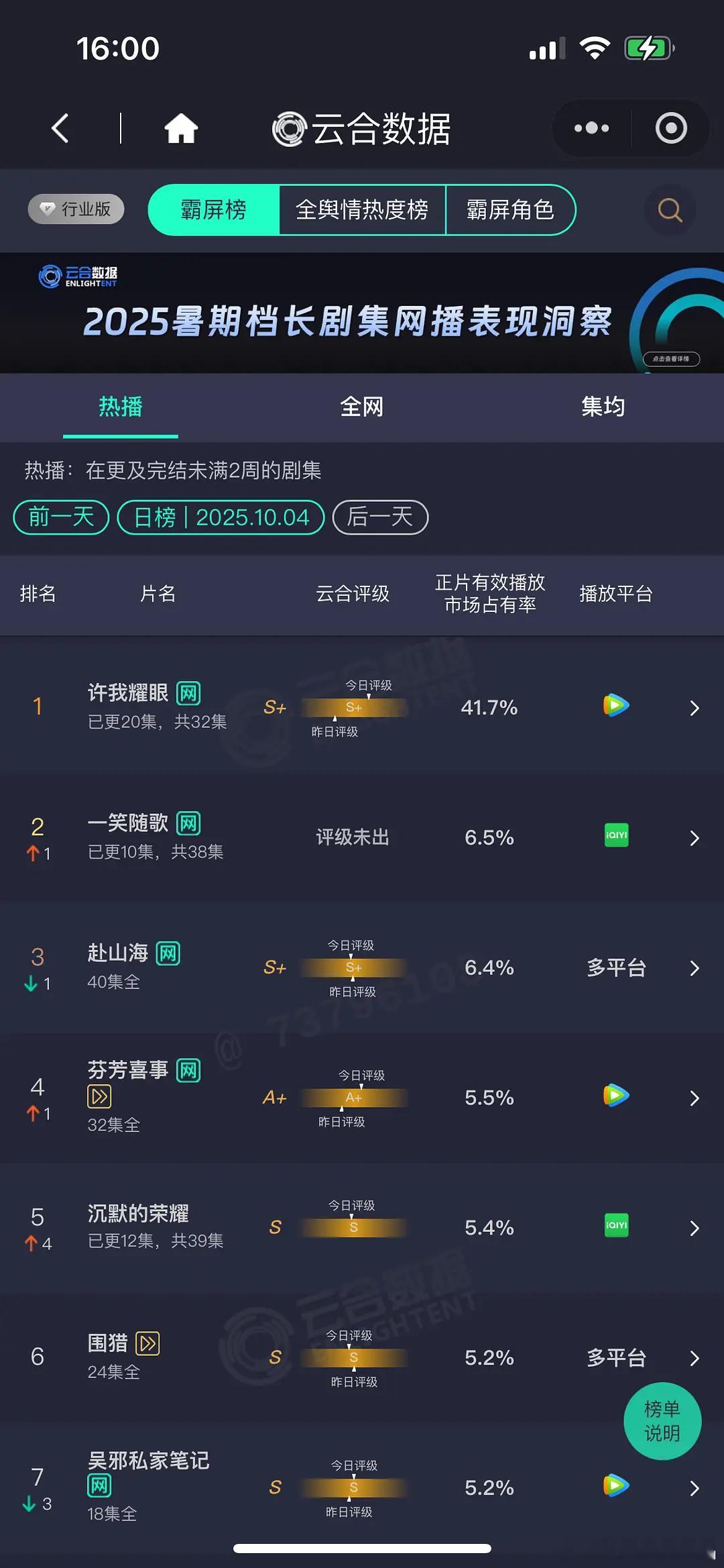 10.4 云合 许我耀眼41.7% 快吸干大盘了
