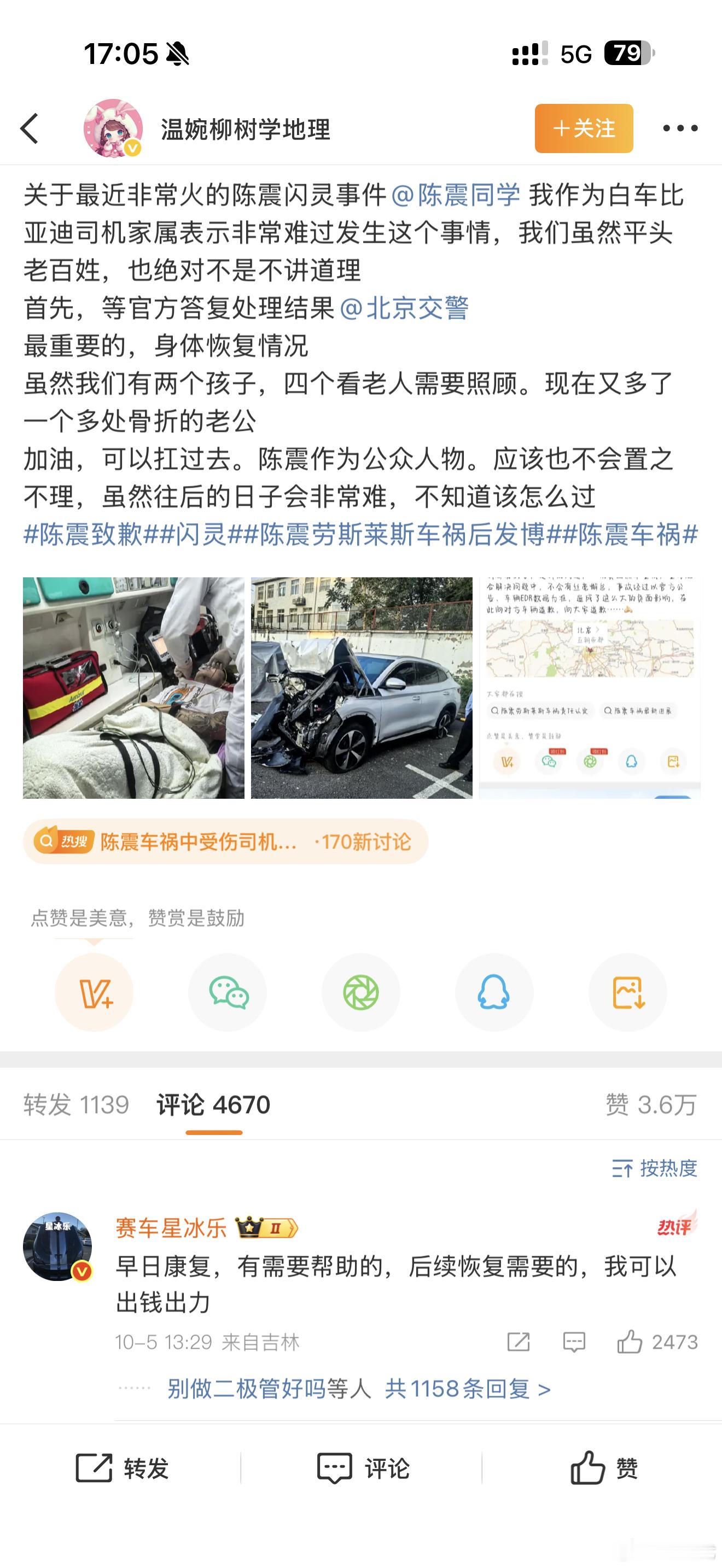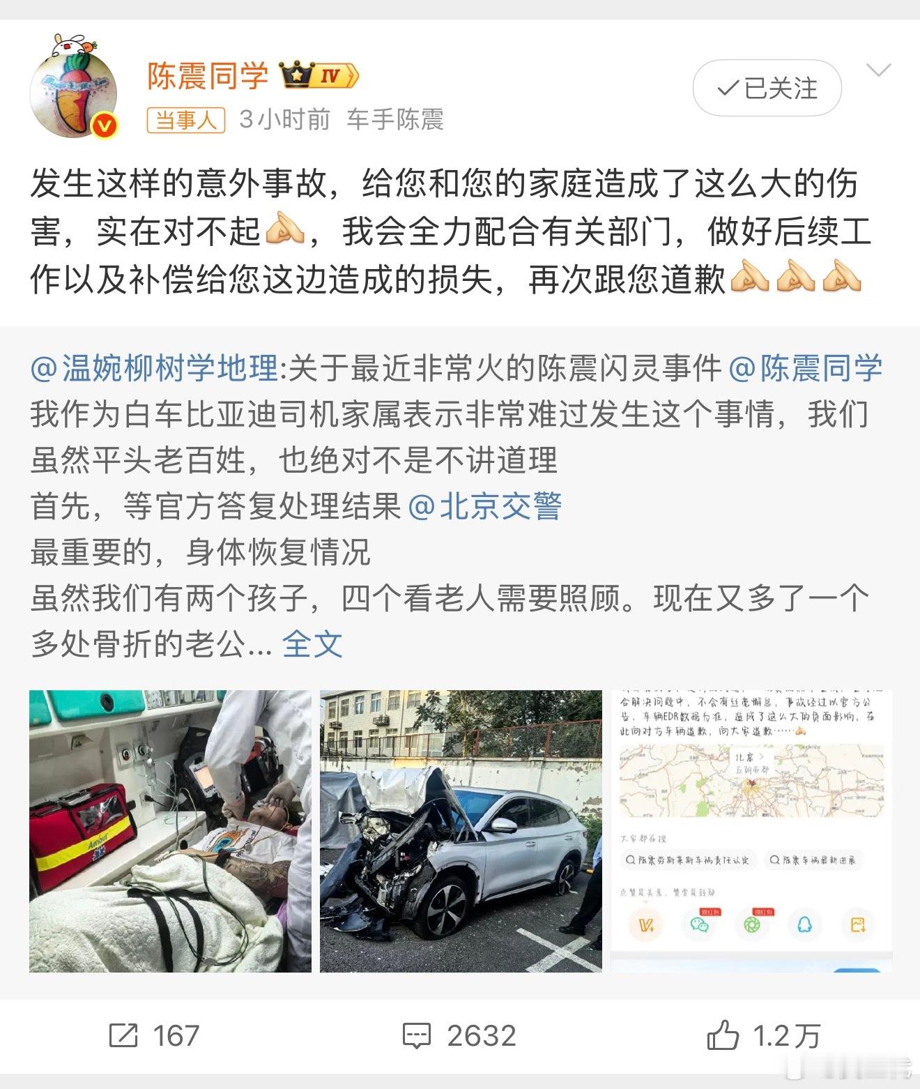 当事人家属出来发微博了陈震再发文道歉陈震车祸受伤司机家属发声