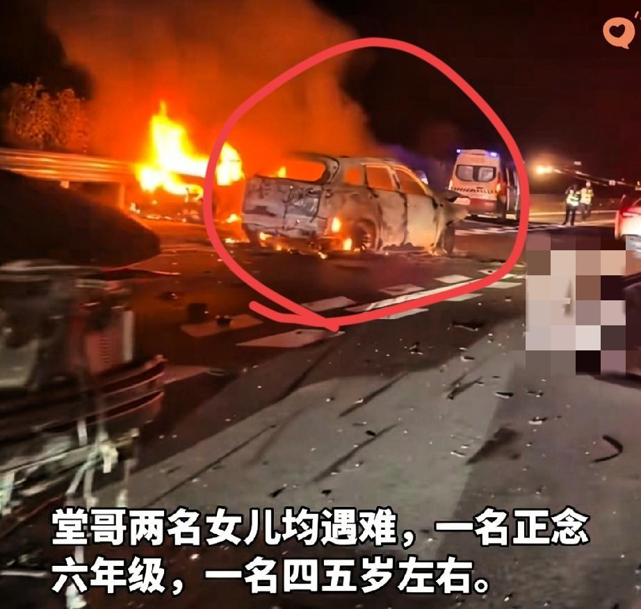 一趟满心欢喜的旅行,怎么就成了天人永隔的悲剧? 广西玉林高速上的这场连环撞,火光冲天,车子烧得只剩架子。 遇难者亲属说,堂哥一家四口去旅游,两个女儿没了,一个六年级,一个才四五岁,堂嫂还在重症监护室抢救。 更让人唏嘘的是,目击者说,事故疑似起因于一辆车撞了绿化带后,没放警示牌,也没开双闪。就因为这一个“侥幸”,多少家庭碎了。 高速上的三角警示牌和双闪,从来不是摆设,是保命的屏障啊! 车坏了先摆警示牌、人撤到护栏外,这不是规矩,是常识。 每次看到这种新闻都揪心。你觉得高速行车,还有哪些必须牢记的安全细节?评论区聊聊。