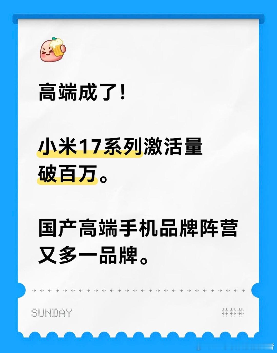 根据可靠消息,小米17系列激活量已经突破一百万大关,这个水平算不算站稳高端市场?