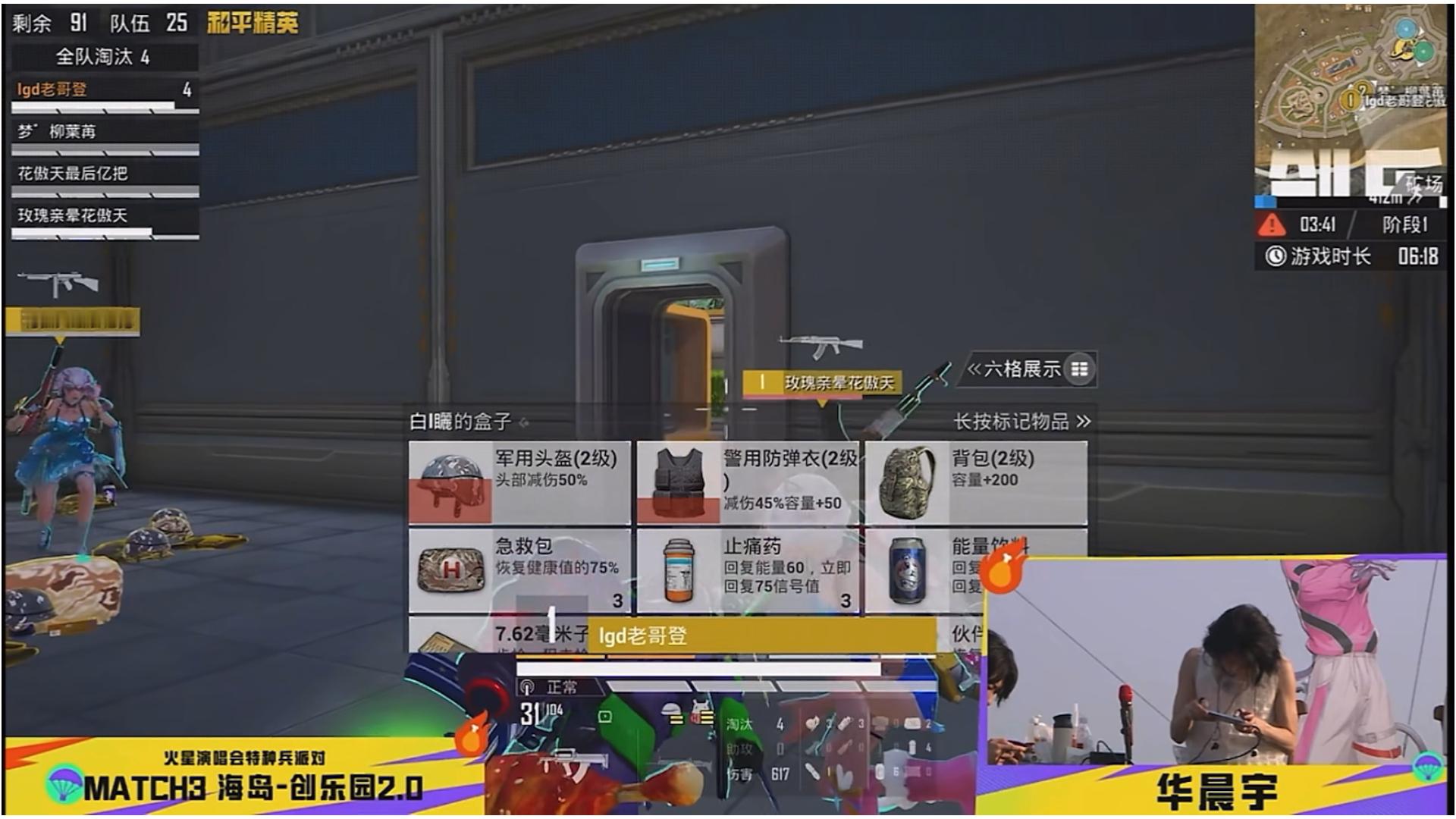 2025华晨宇火星演唱会在火星演唱会和花花一起吃鸡防御力拉满,今天花花穿了两件三级甲[doge],难怪一落地就再上演了一穿四!!