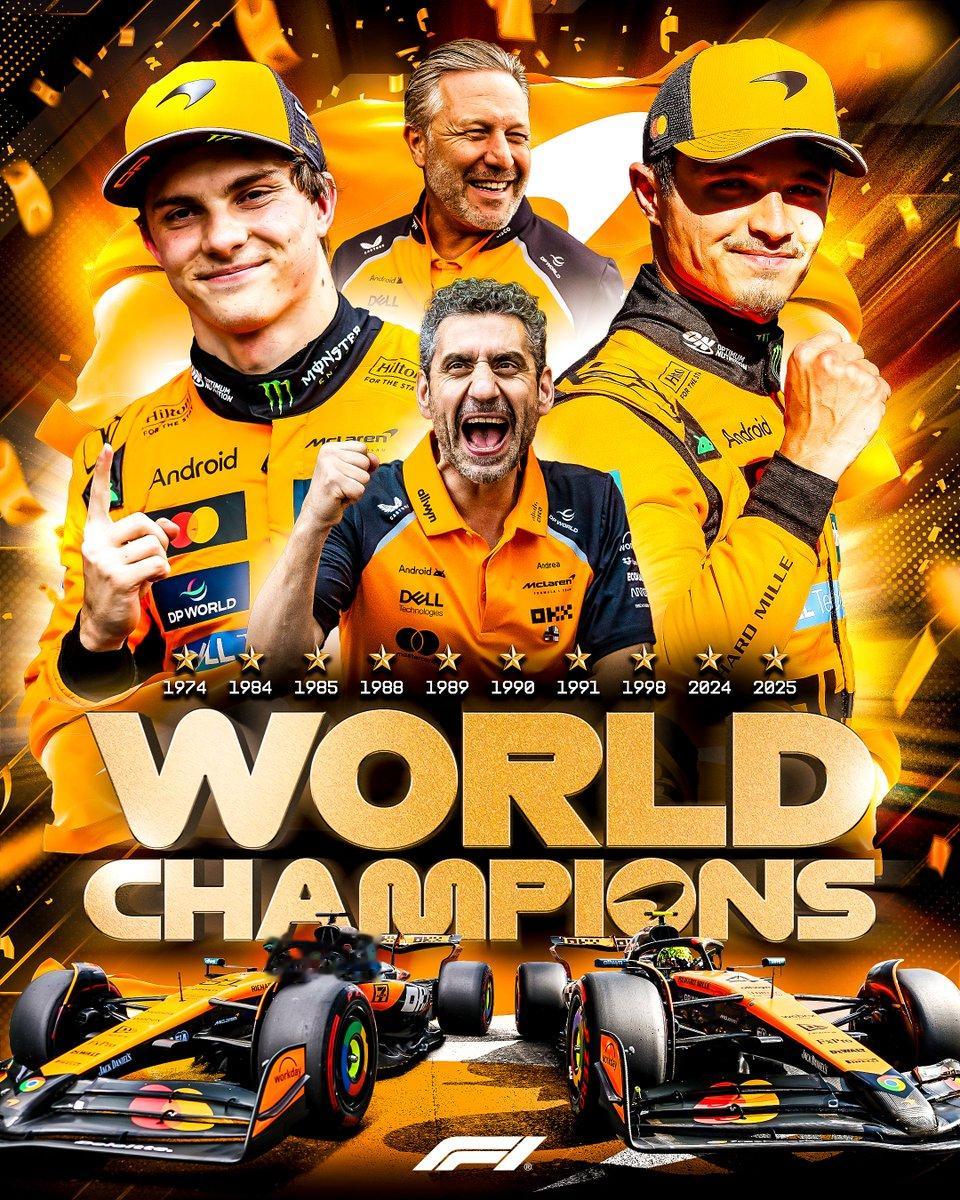 F1官方推特账号发推特报道,迈凯伦车队成为2025赛季F1制造商总冠军!他们展现出统治级的表现#F1