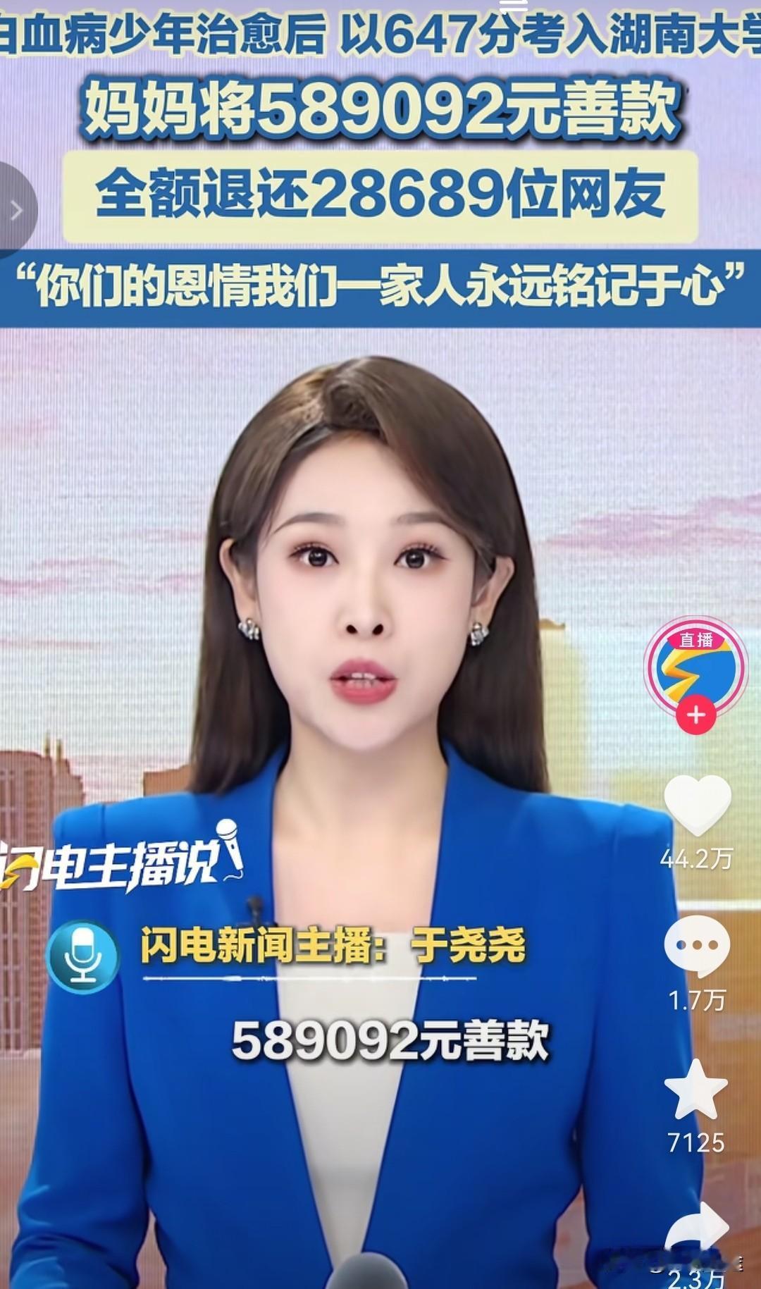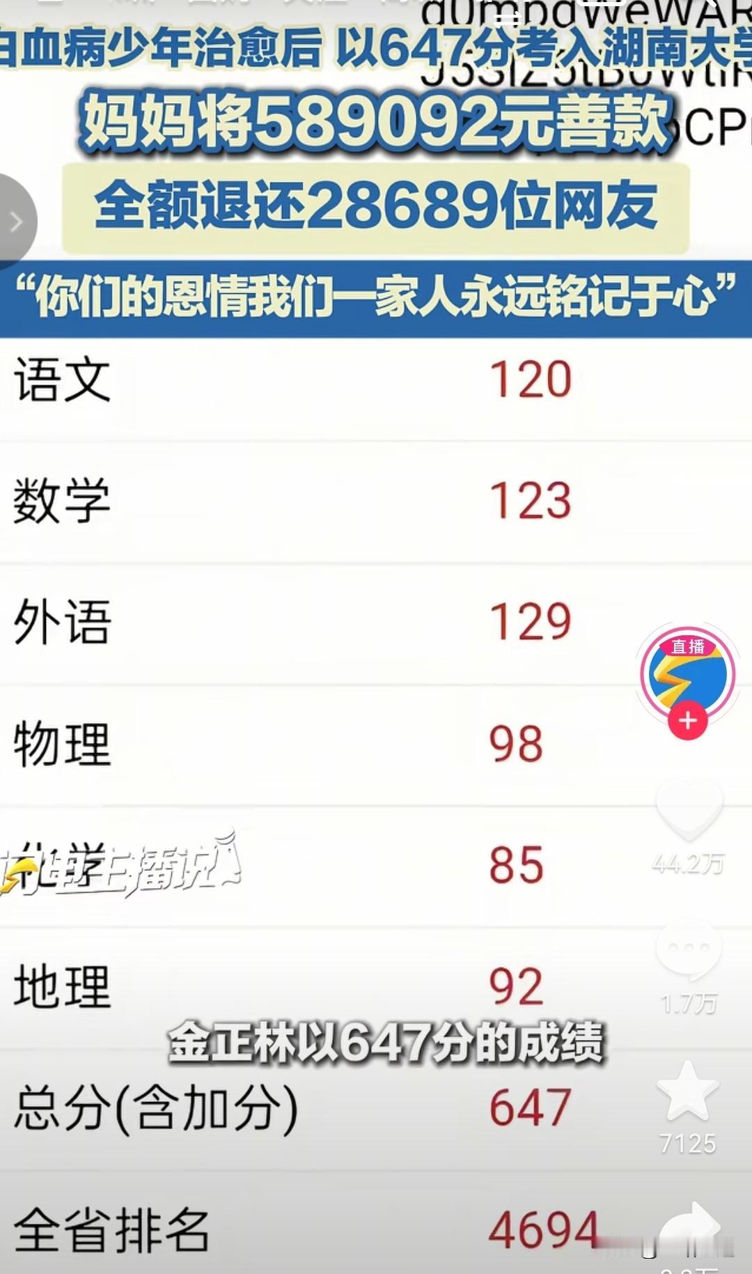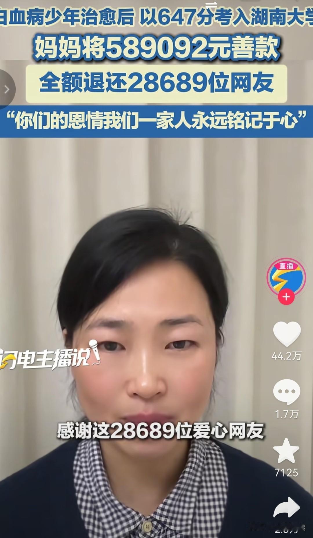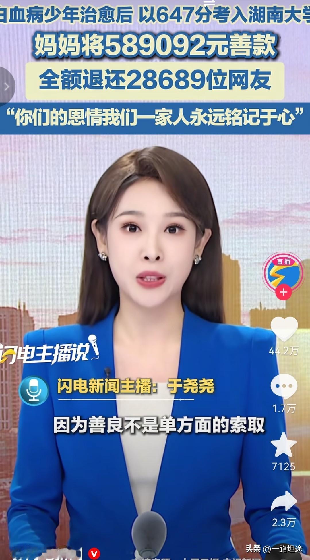 这人品这格局,难怪她儿子不但痊愈,还能高分考入湖南大学。真的是满满的正能量,要