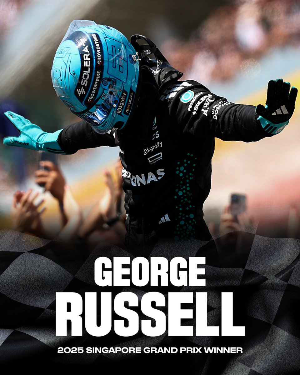 记者ESPNF1官方推特账号发推特报道,GeorgeRussell在新加坡站统治级表现夺冠1⃣