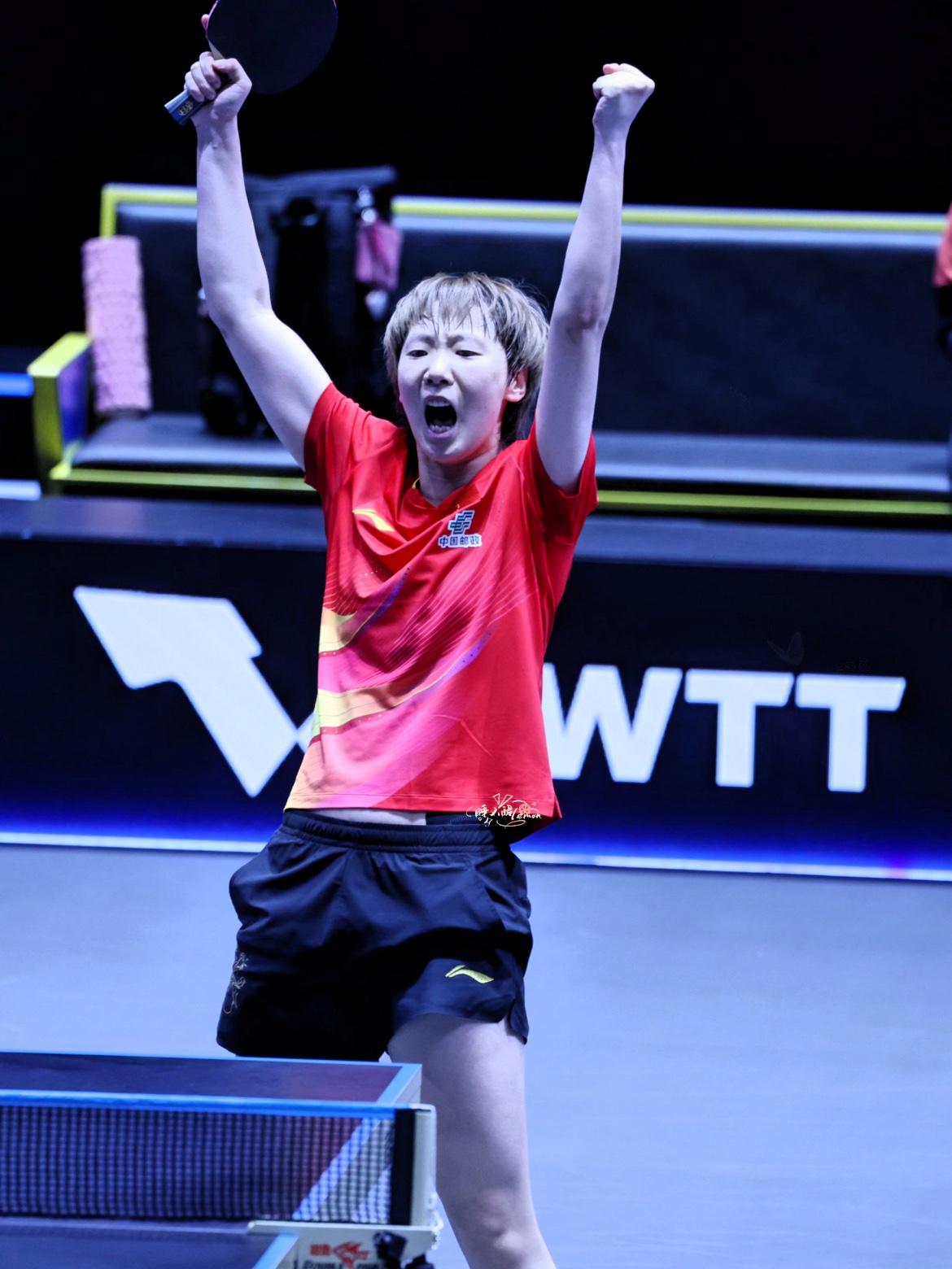 王曼昱赢了!这场球看得我揪心。面对全场一边倒的喝彩和加油声。我真是百思不得其解。都是优秀的运动员,王曼昱可能是不多的出身寒门的乒乓球运动员,可我偏对王曼昱多了份心疼。还记得她早年采访里说,妈妈靠卖肉夹馍供她打球,就这一句话,让我成了她的死忠粉。在人才济济的国乒队,她没有先天优势,全靠一股拼劲从寒门闯出来,这份不容易,比任何光环都打动人。 今天她终于夺冠,为她祝福!今天的王曼昱好美!