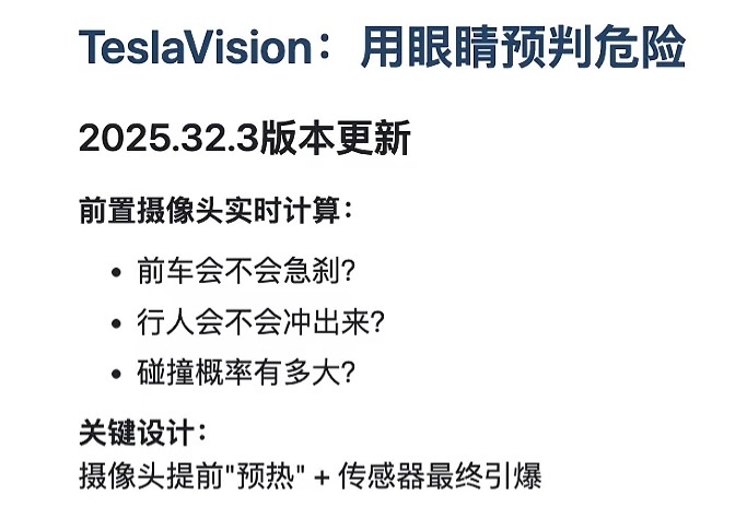 我今天吹爆特斯拉,当然有人会质疑这个技术的的成熟度,既然通过OTA上车那一定是验证过的。当大家都在卷冰箱彩电沙发的时候,特斯拉还在极致的安全上持续精进。