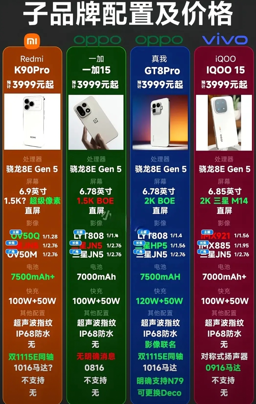 小米今年危险了哦。看看这配置和价格。就只有半个月独占期优势。 IQOO15是真的意外。今年的镜头模组升级巨大。价格也不贵。 真我也是一匹黑马。硬件真妥妥的拉满。 今年子品牌全都提高起步价。大家认账吗?大家买单吗? 朋友们最期待哪款呢?