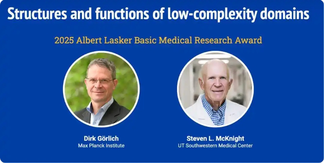 今年的拉斯克基础医学研究奖授予了德国马克斯·普朗克研究所的迪尔克·格尔利希和美国德克萨斯大学西南医学中心的斯蒂文·麦克奈特,表彰他们在揭示细胞内运输和细胞组织新原理方面的贡献。