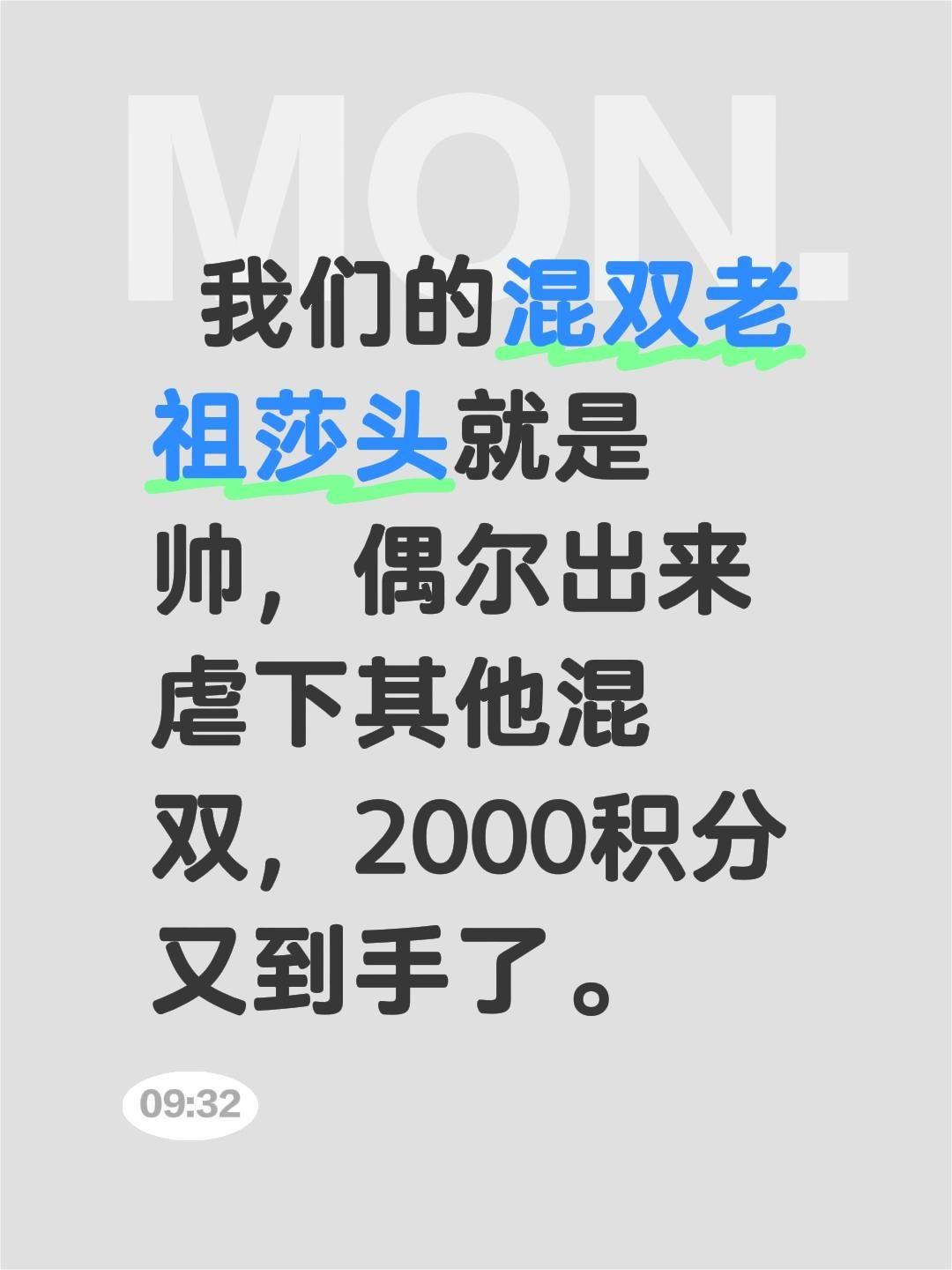 我评论了@李武军 的作品: 我们的混双老祖莎头就是帅,偶尔出来虐下其他混双,2000积分又到手了。