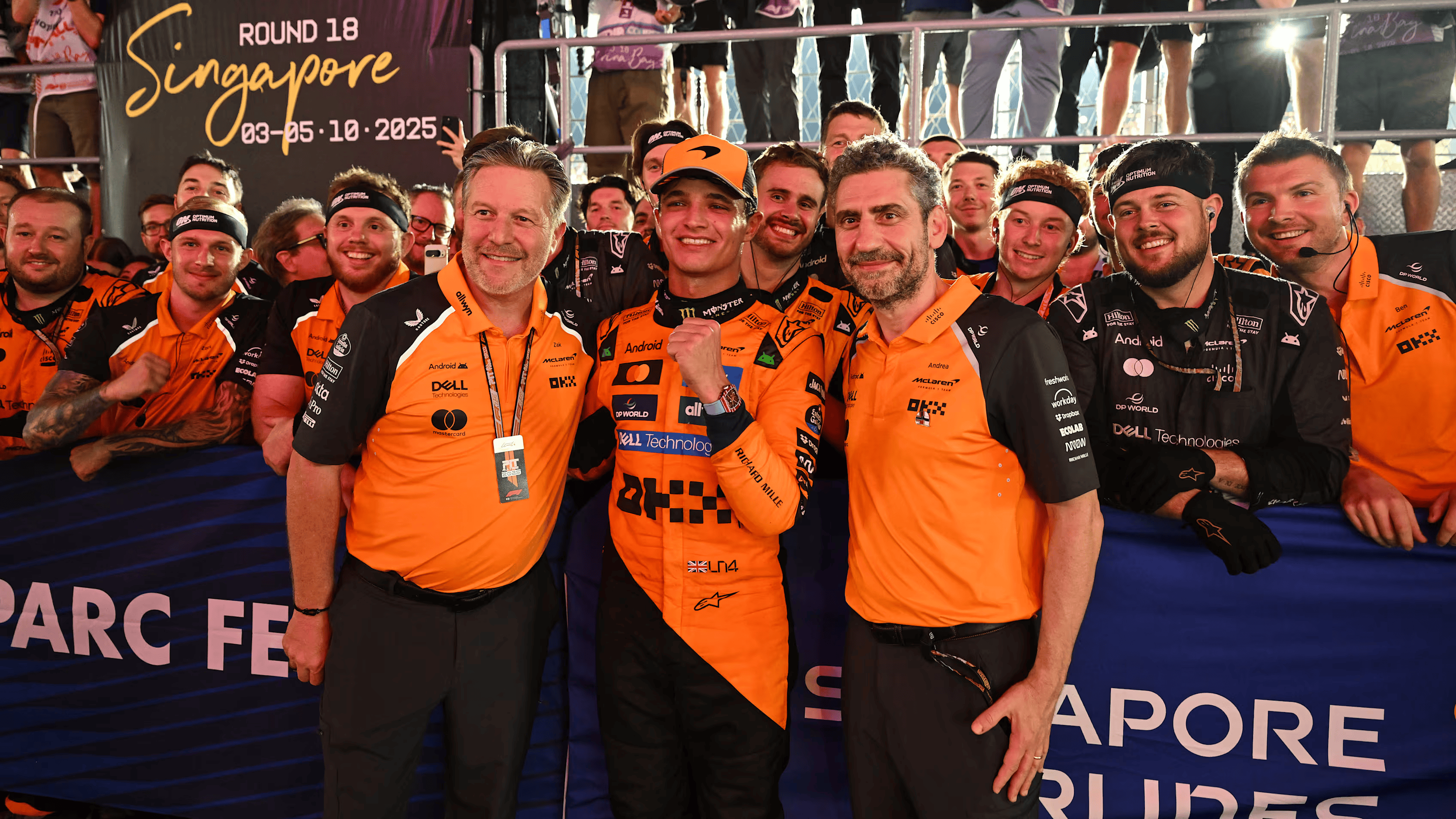 ——兰多-诺里斯为迈凯伦获得第三名,他在过去四届新加坡大奖赛中分别获得过第一、第二、第三和第四名。