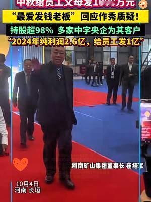 这下好了,全国人民都知道了!”河南icon最爱发钱老板又出名了,中秋又整活——直接给每个员工父母发600块, 现场还爆了个暖心事儿:有员工买房差15万想预支工资,他二话不说给20万,连结婚的份都包了! 真不是装大方,他总说员工就是自己孩子,只要是实在需求,能帮就帮。这哪是老板啊,简直是把员工的难处当自家事扛! 现在多少公司谈“家人文化”都是空话,他倒好,真金白银砸在员工身上,这样的企业,员工能不拼命干? 说到底,老板把员工放在心上,员工才会把公司扛在肩上。你们说,要是遇上这种老板,谁舍得跳槽啊?崔培军