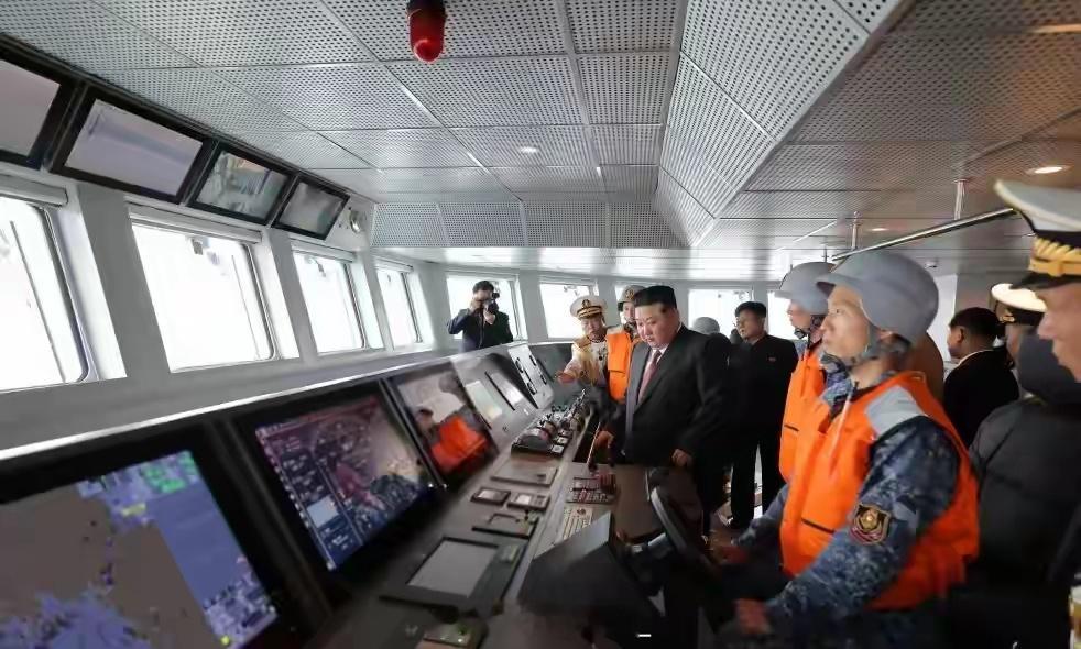 金正恩5日参观武器装备展览会“国防发展-2025”,作为参观日程的一项,金正恩登上并参观了朝鲜人民军海军驱逐舰“崔贤”号。