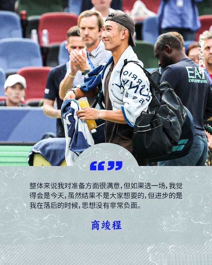 总结上海大师赛整体表现时,商竣程表示:“打完第一场后给了我很多信心,第二场又赢了世界前十,今天在场上也非常的自信。整体来说我对准备方面很满意,但如果选一场,我觉得会是今天,虽然结果不是大家想要的,但进步的是我在落后的时候,思想没有非常负面。尽管有些急躁、对手擦网,但想回来我也有一些运气球,只是没有在关键分,生活就是这样。”