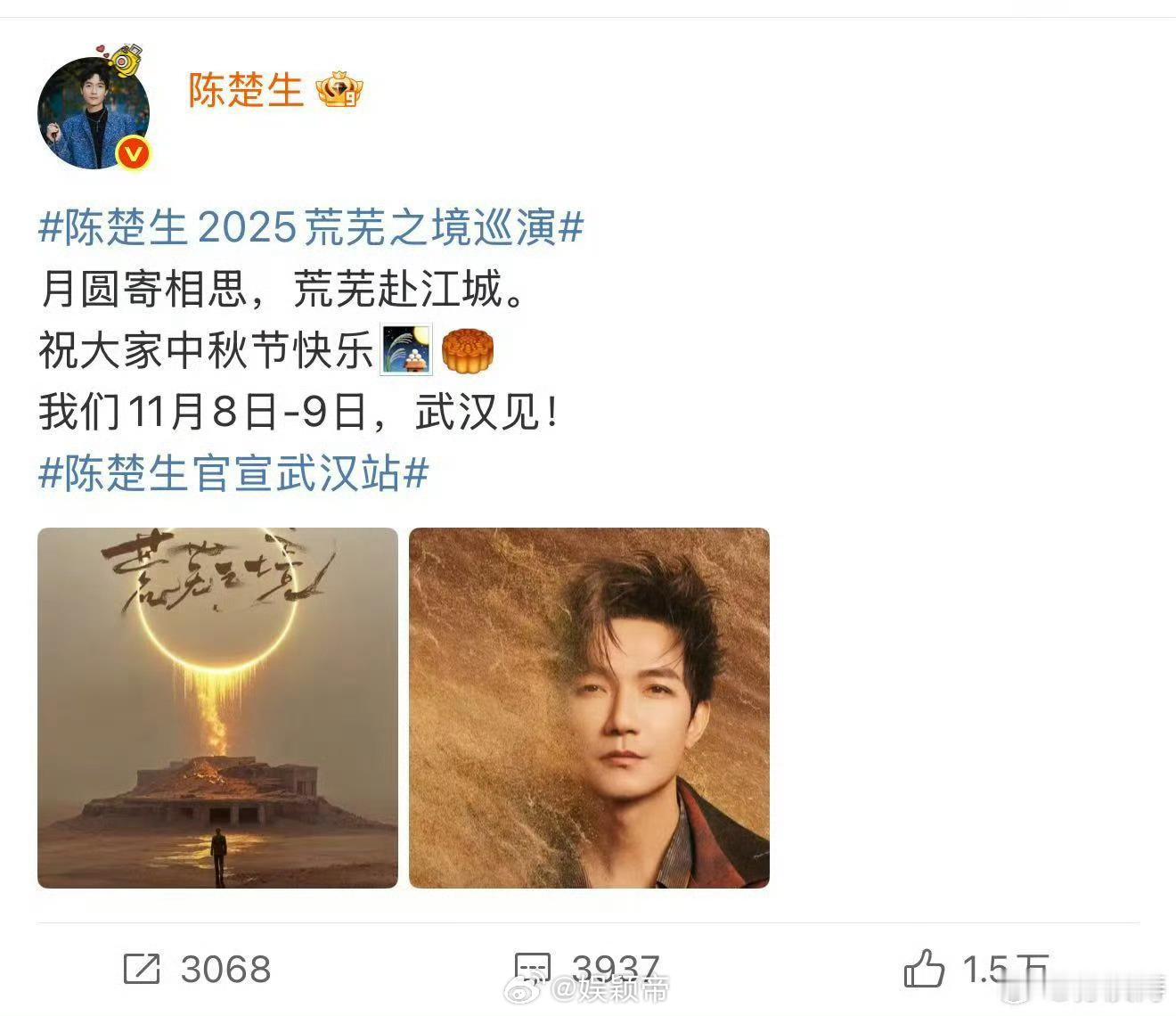 陈楚生上次官宣是樱花这次是中秋春日樱花秋日月,生哥把武汉的浪漫都收集全了!上次