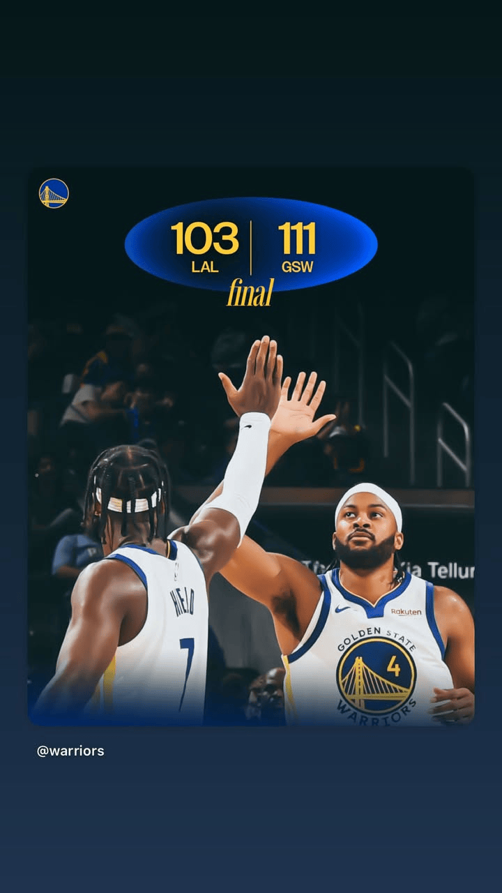 旗开得胜!波斯特社媒转发勇士今日赢球海报