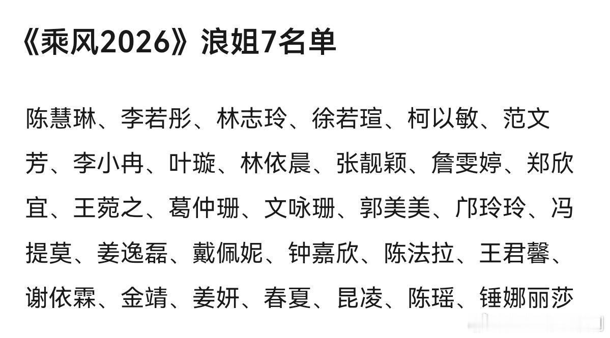 陈慧琳、李若彤、林志玲、徐若瑄、柯以敏、范文芳、李小冉、叶璇、林依晨、张靓颖、詹雯婷、郑欣宜、王菀之、葛仲珊、文咏珊、郭美美、邝玲玲、冯提莫、姜逸磊、戴佩妮、钟嘉欣、陈法拉、王君馨、谢依霖、金靖、姜妍、春夏、昆凌、陈瑶、锤娜丽莎