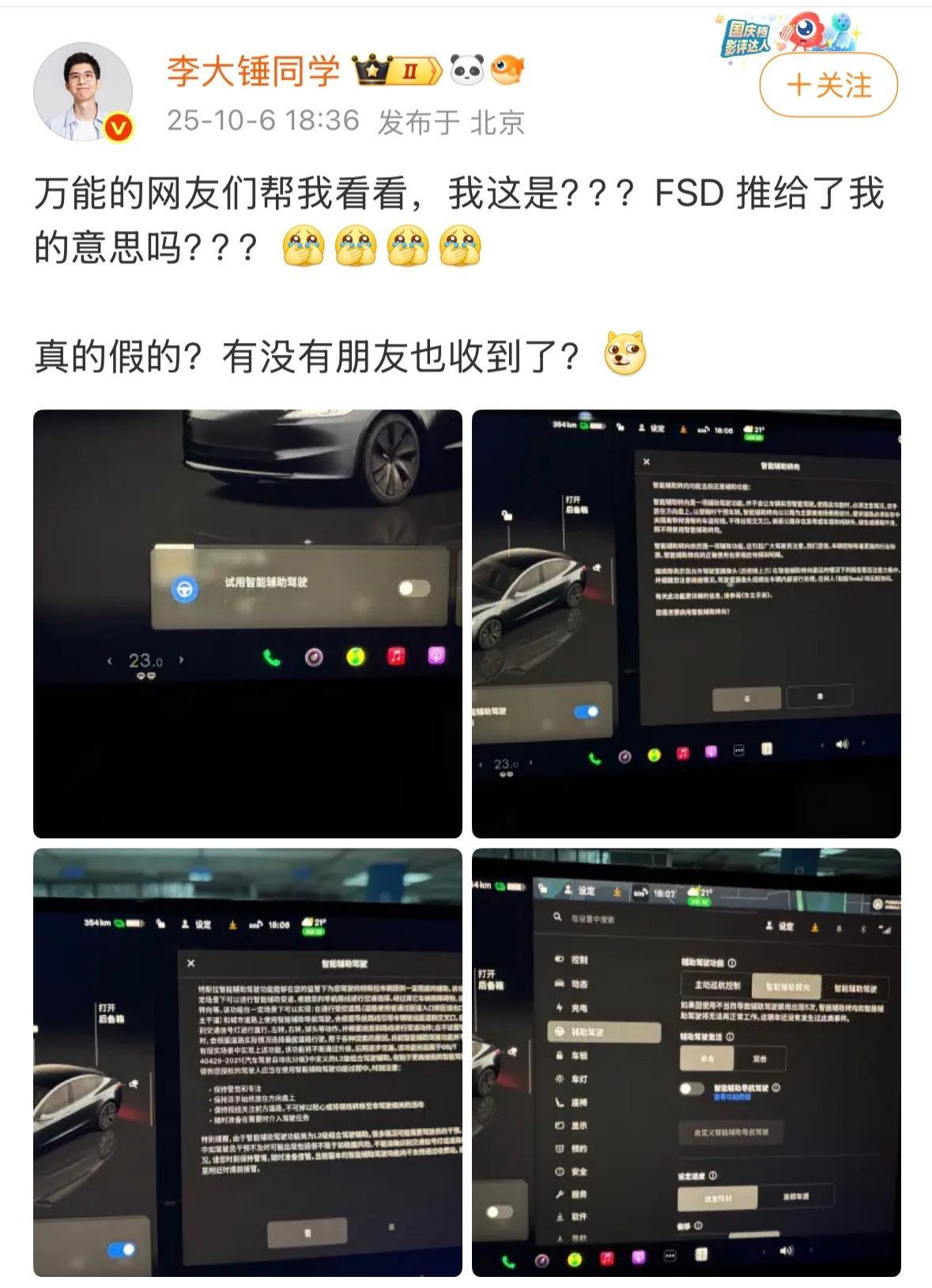 啊?大锤之前不是一直没收到特斯拉 FSD 推送吗