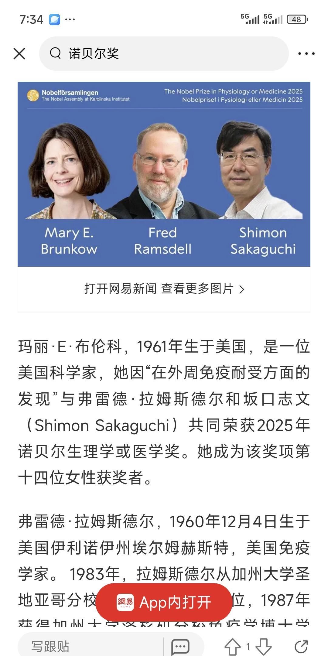 2025首个诺贝尔奖公布!又是日本科学家!美国日本科学家共享诺贝尔生理学奖!日本学者获奖诺贝尔奖已不是新闻!21世纪以来,之前有10位日本科学家获奖!奇怪的是,日本在国人眼里已经是那么的一无是处,仿佛真成了小日本!这么看来,各行各业,日本还是在全世界领先!