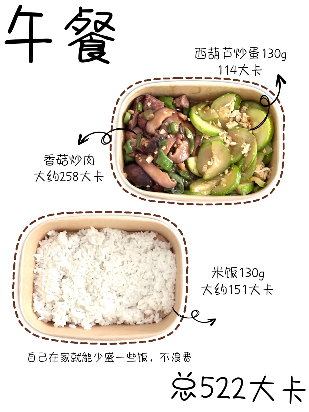 午餐:西葫芦炒蛋/香菇炒肉/米饭