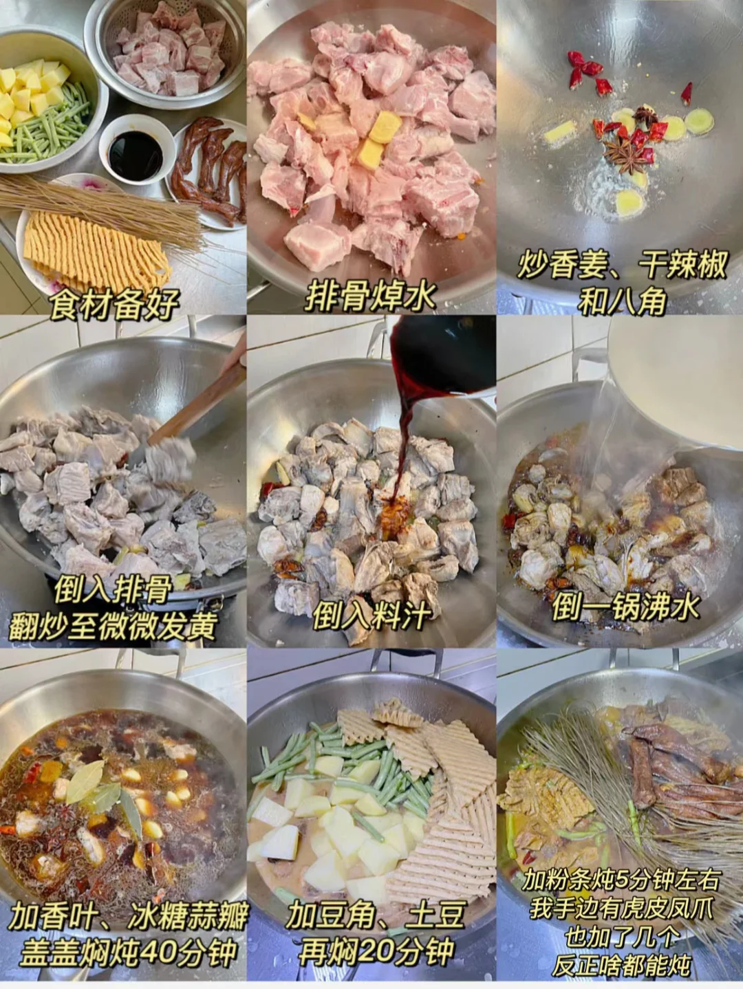 👉食材:土豆、豆角、粉条、排骨、花干(你喜欢的茄子、鸡蛋…啥都能放)
