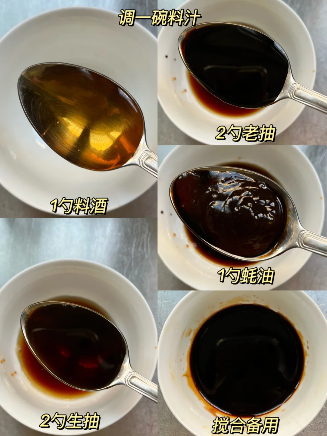 👉料汁:2勺生抽+2勺老抽+1勺料酒+1勺蚝油