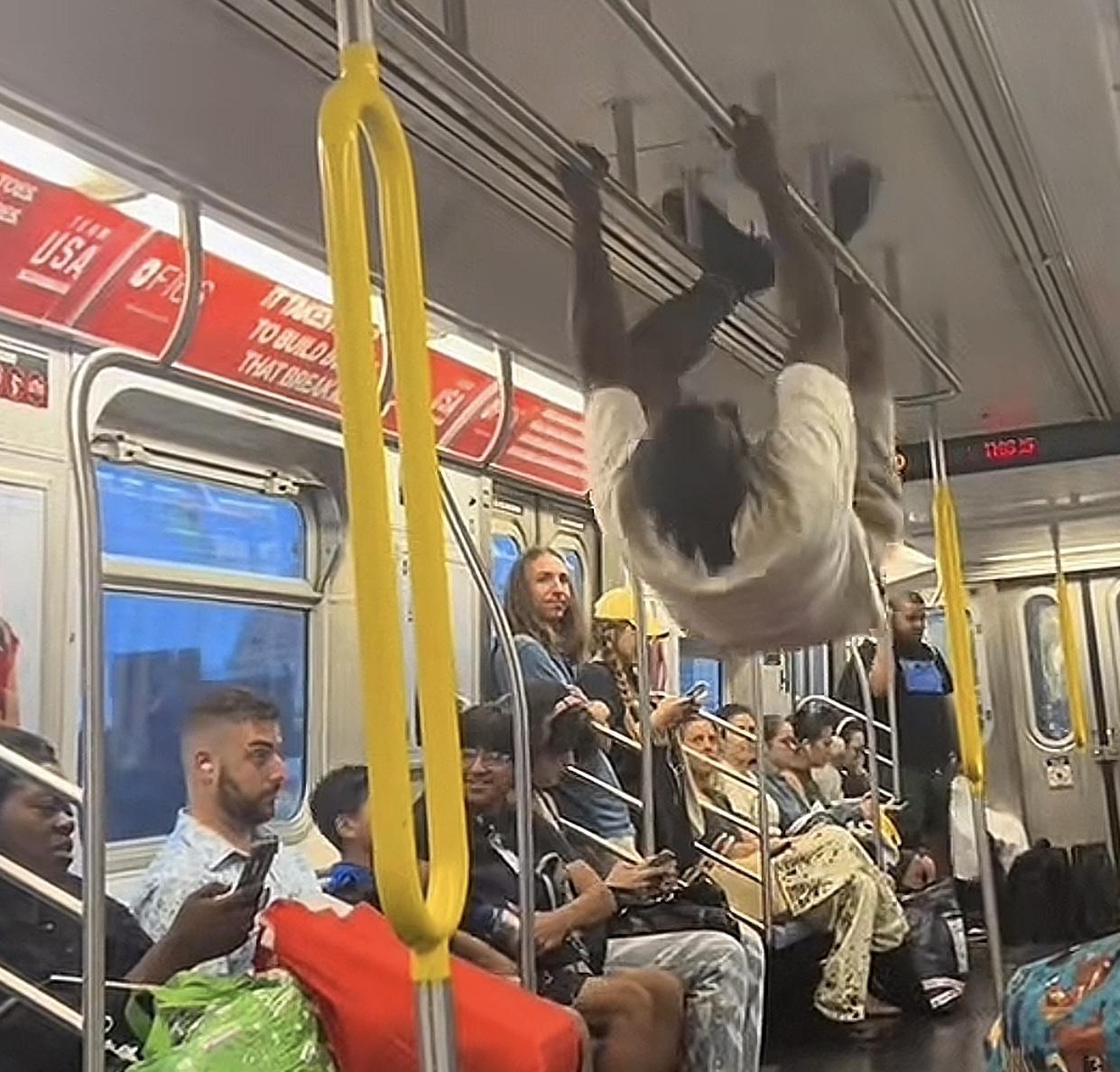 偶然看见一段黑人大兄弟在地铁上玩单杠的视频,要不是屏幕显示下一站“龙头寺公园”还以为是在纽约,旁边的金发中国姑娘不但没告诉他这样不合适,反倒眼神里都是崇拜,四周的乘客虽然诧异但也不好意思说什么,毕竟是外国友人。国际人才交流是好事,但还是不要把在纽约地铁的自由自在也带过来。