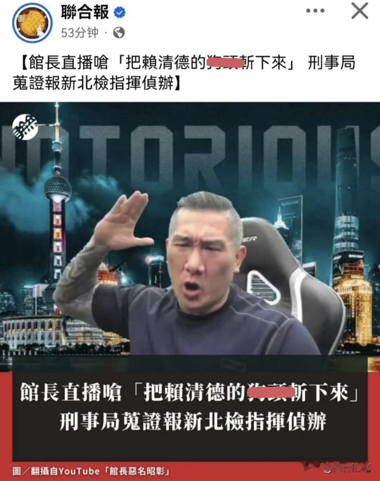 馆长惹祸了,因为在直播中一时嘴快,对赖清德的言论攻击过于激进,居然被民进党当局抓