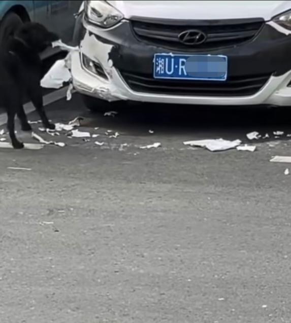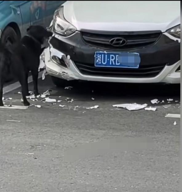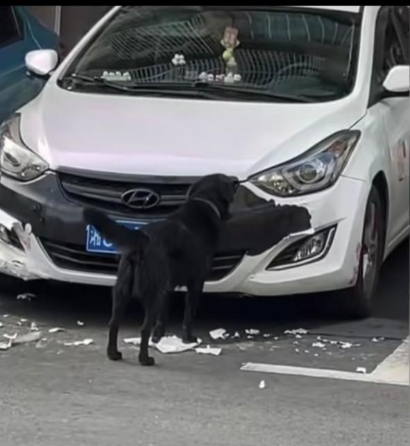 湖南一女子将自己的爱车停在小区楼下的店铺门口的停车位上,没想到却遭到一只黑狗的狂咬,车子的前保险杠给狗咬的七零八落,惨不忍睹。[捂脸]