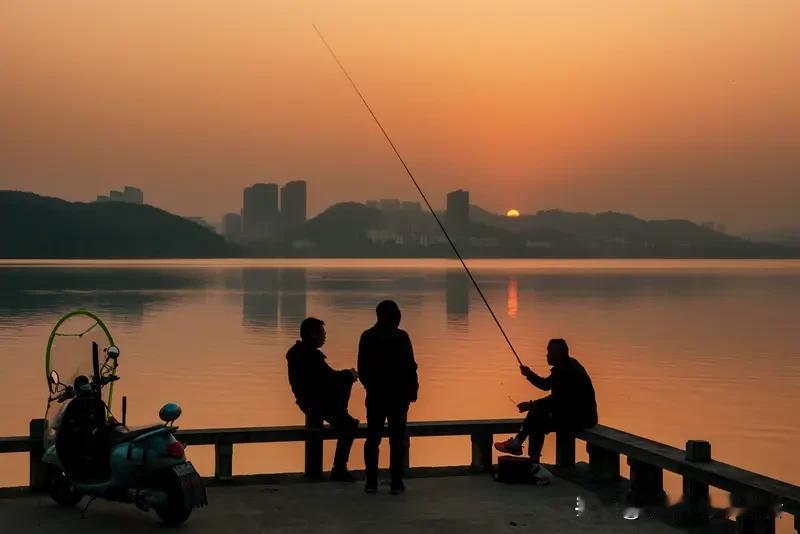 爸爸退休后迷上了钓鱼,每天早上五点就背着鱼竿去河边,我总觉得钓鱼没意思,坐着一动