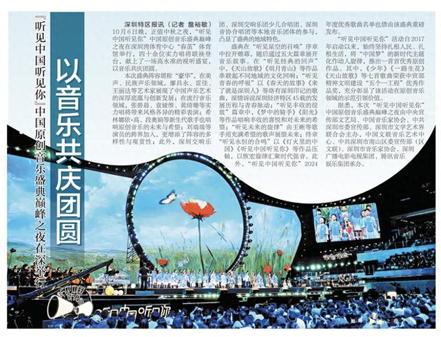 10月6日晚,正值中秋之夜,“听见中国听见你”中国原创音乐盛典巅峰之夜在深圳湾体育中心“春茧”体育馆举行,四十余位实力唱将联袂登台,献上了一场高水准的视听盛宴,以音乐共庆团圆。