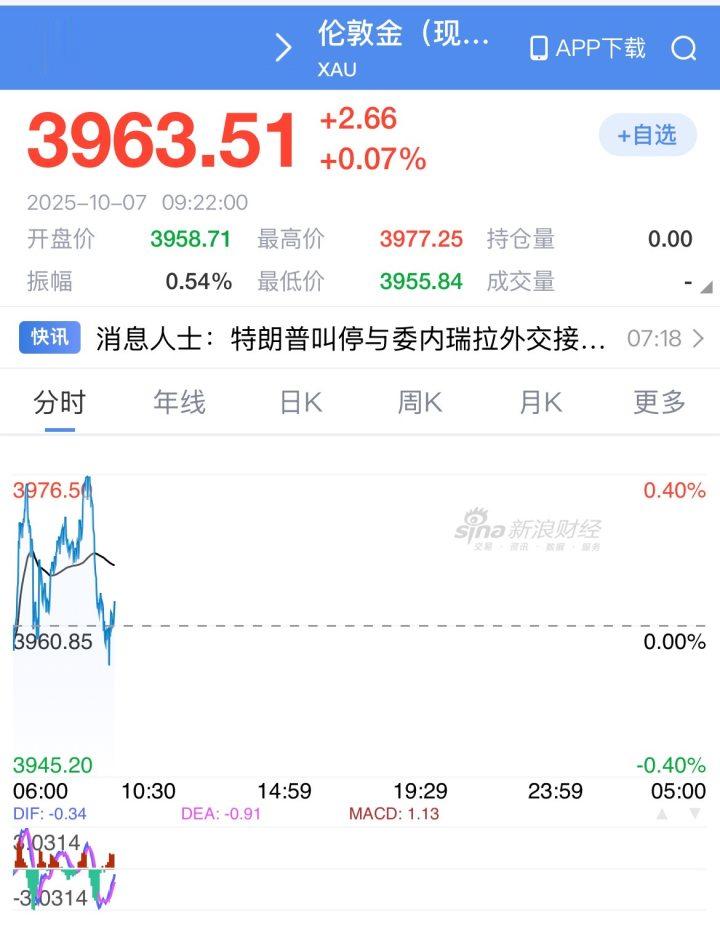 国庆长假期间,海外资本市场“精彩不断”。最受人关注的是,受美国政府“停摆”闹剧影响,伦敦现货黄金价格10月7日上午已经升破3960美元/盎司关口,最高触及3977.25美元/盎司,纽约期货黄金价格盘中首次突破4000美元/盎司,再度刷新历史新高。