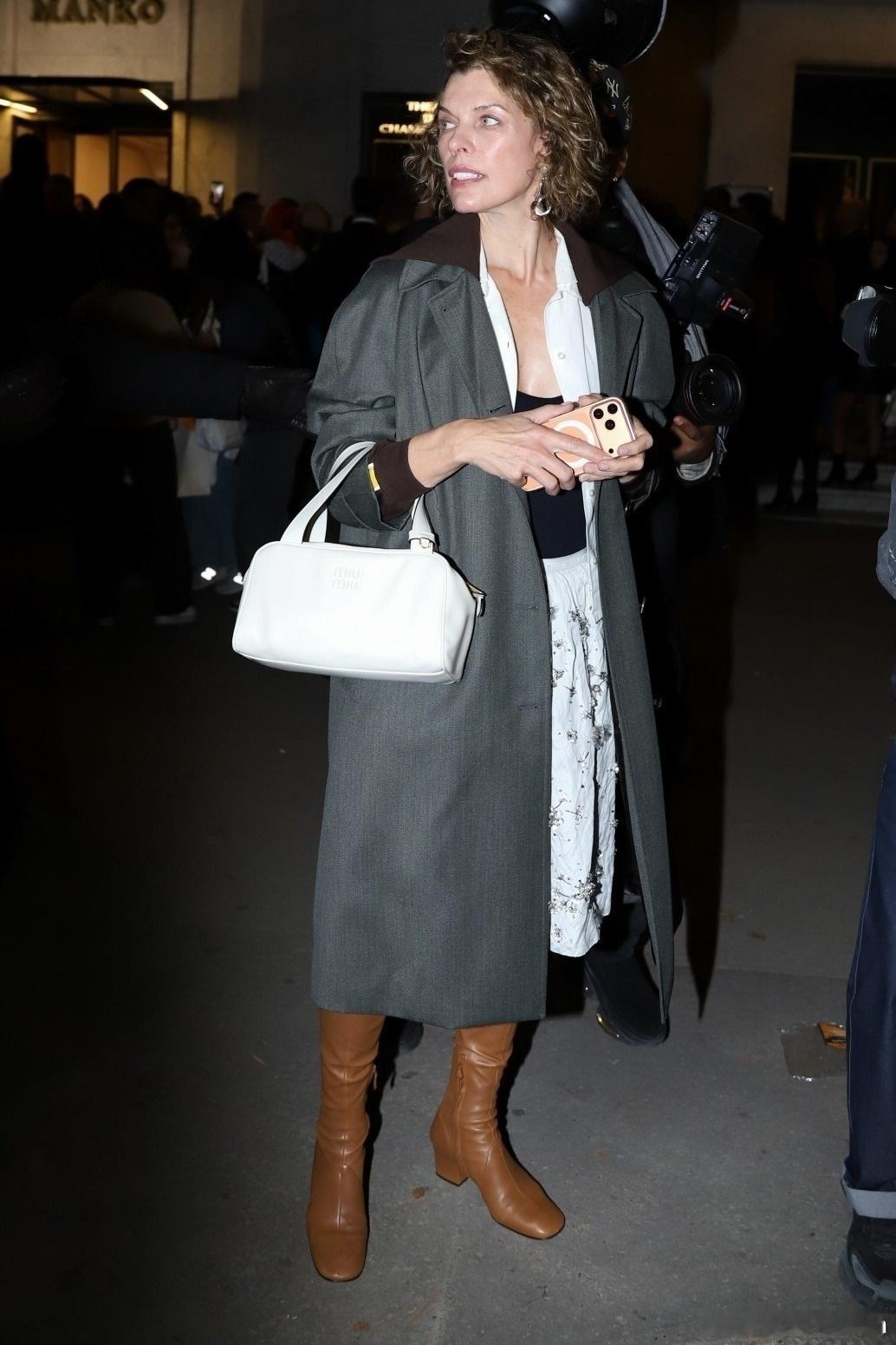 milla jovovich米拉乔沃维奇在巴黎外出前往参加Miu Miu的秀后派对,还是私服顺眼多了