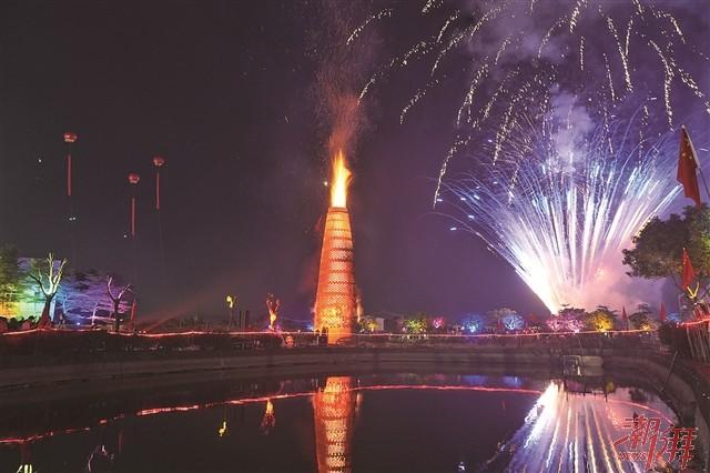 伴随着现场越烧越旺的瓦窑塔,各地潮剧、舞狮、潮州大锣鼓、英歌舞、水上飞人烟火秀等精彩节目轮番上演,为市民游客献上一场视听盛宴。大家被热闹喜庆的气氛包围着,纷纷用手机、相机记录精彩瞬间。