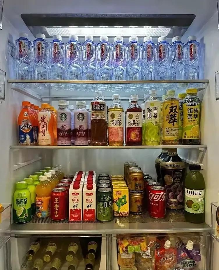 难怪好多年轻人年纪轻轻就得痛风,看看这冰箱!压根看不到一片菜叶,平时也不自己做饭,一日三餐全靠点外卖,反倒成箱买各种饮料,直接当水喝[尬笑][尬笑][尬笑] 加上现在年轻人大多在高负压下勉强过日子,从早忙到晚跟牛马似的,想规律作息又特别难,这些习惯慢慢就给健康埋了雷,迟早是要付出代价的。 像我与其喝那些饮料,不如多喝白开水,嫌没味道就泡点绿茶,习惯了就好,毕竟手头不宽裕,要更加珍惜身体,不然真生病了,没钱看病更麻烦[捂脸][捂脸]