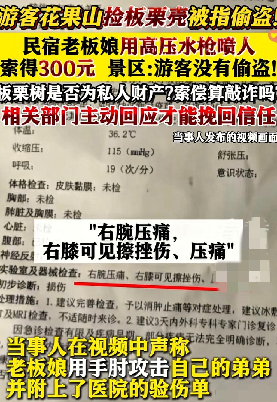 一个板栗壳差点砸崩连云港文旅? 这波操作真让人看傻了! 游客就是好奇捡了个地上的板栗壳,民宿老板上来就扣偷盗帽子,用水枪滋人不说,还躺地讹钱,明明景区之前还喊着“来捡板栗”呢。 等网友骂翻了,生意凉透了,又跳出来道歉,说媳妇孕期情绪不稳,这哪是认错,分明是被现实打服了。 最讽刺的是游客压根不要那300块,就想要句真心道歉。 更可气的是景区,一边说游客没偷,一边甩锅“管不了民宿”,忘了自己才是招牌兜底的? 这哪是民宿坑人,是景区把游客的信任当摆设。 文旅口碑拼的就是细节,不是宣传喊得多响。 你觉得景区该怎么补这个锅?评论区聊聊~