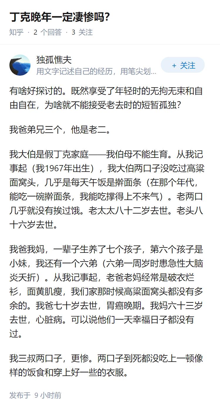 为什么会有人觉得丁克晚年悲惨?
