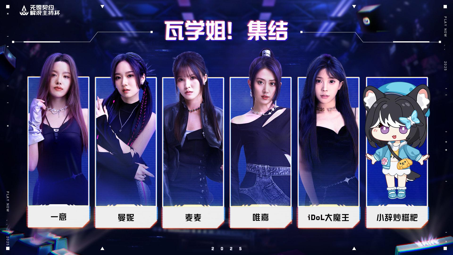本次解说主持杯将有6支队伍出战,各队“瓦学姐”将分别由一意,曼妮,麦麦,唯嘉,iDoL大魔王,小辞炒糍粑担任。(6支队伍具体成员将于选人大会直播现场公布)
